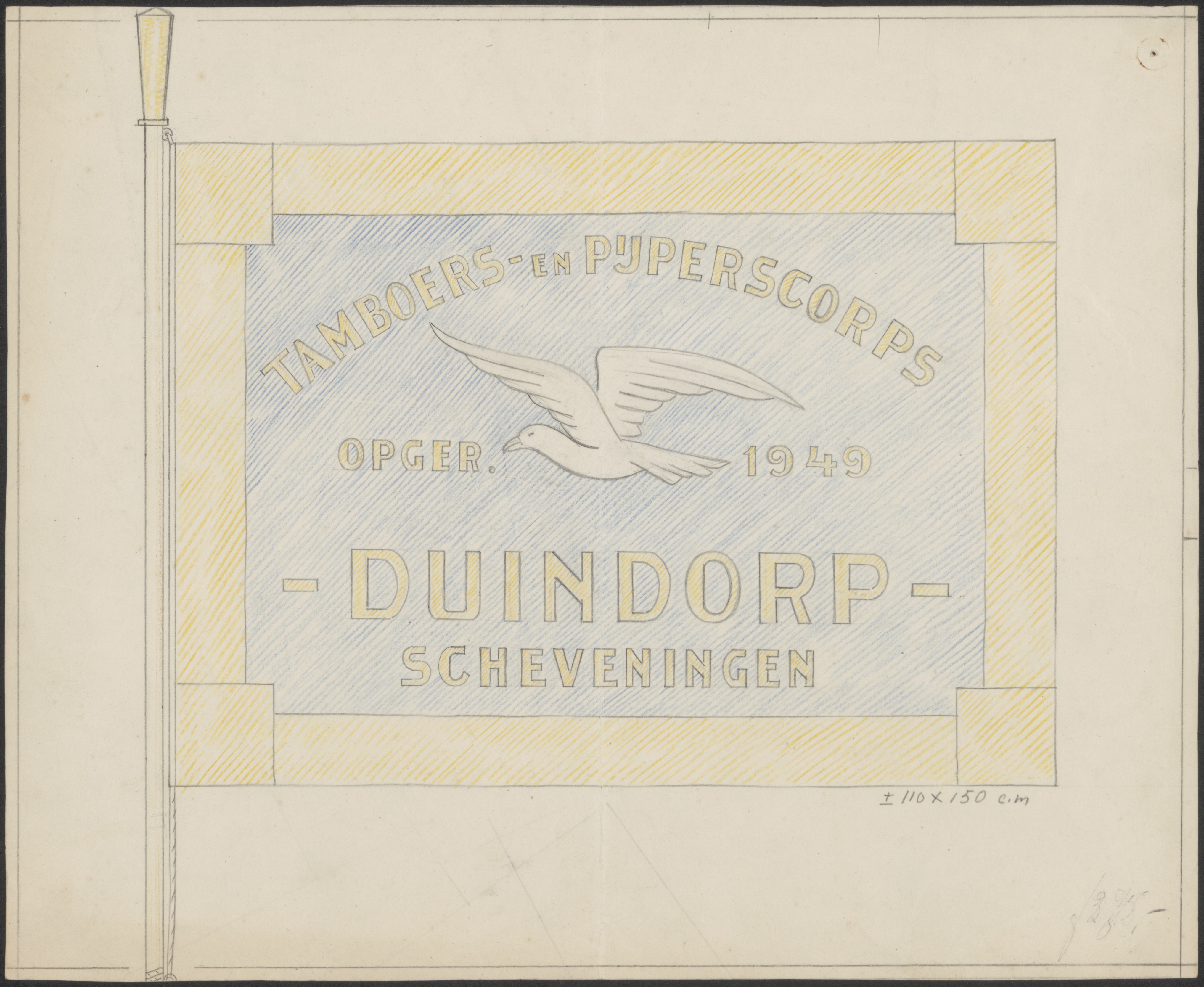 - Een vlag van het Tamboers- en Pijperkorps 'De Duindorp' te Scheveningen, opgericht 1949.