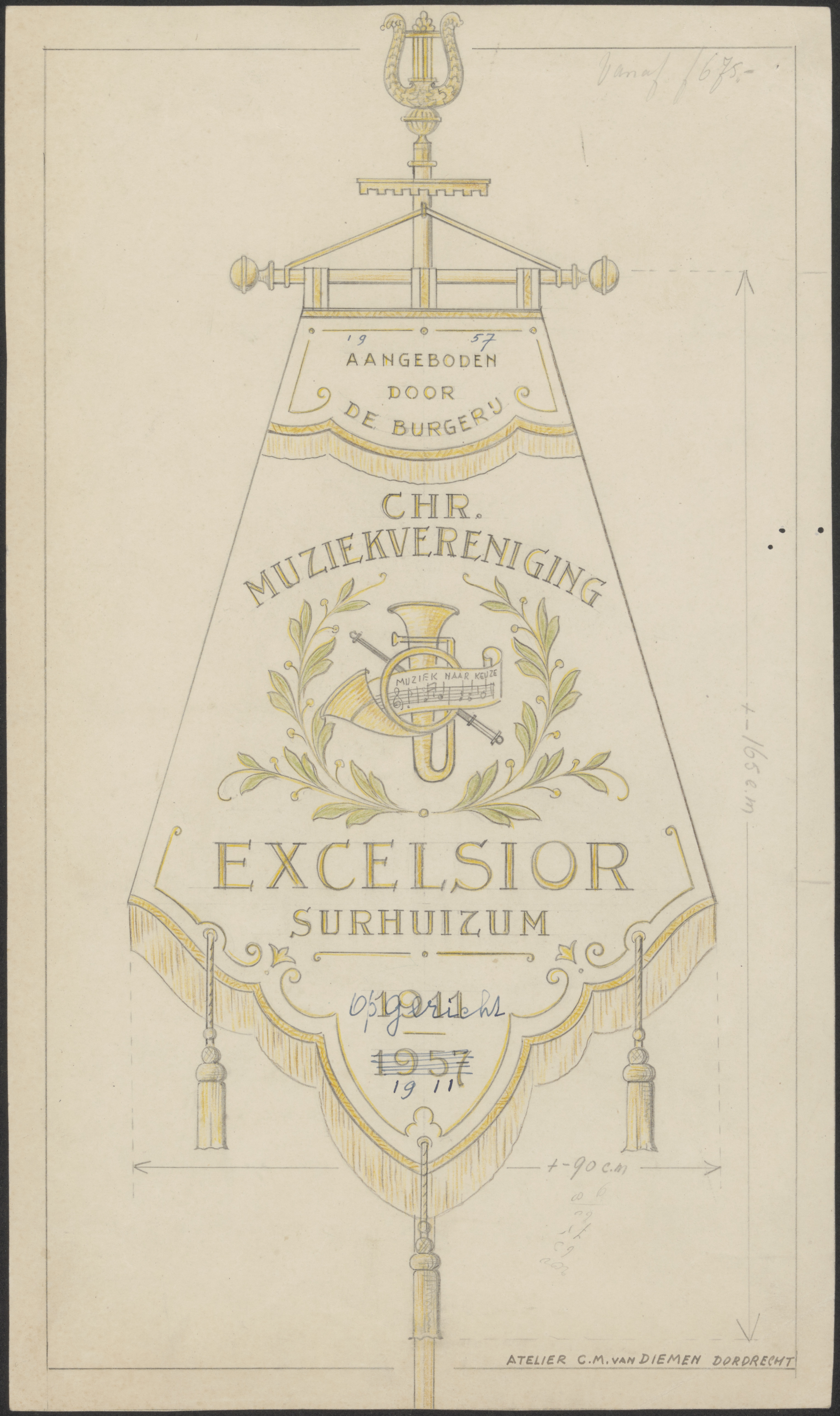 - Een vaandel van de Chr. Muziekvereniging 'Excelsior' te Surhuizum, opgericht 1911.