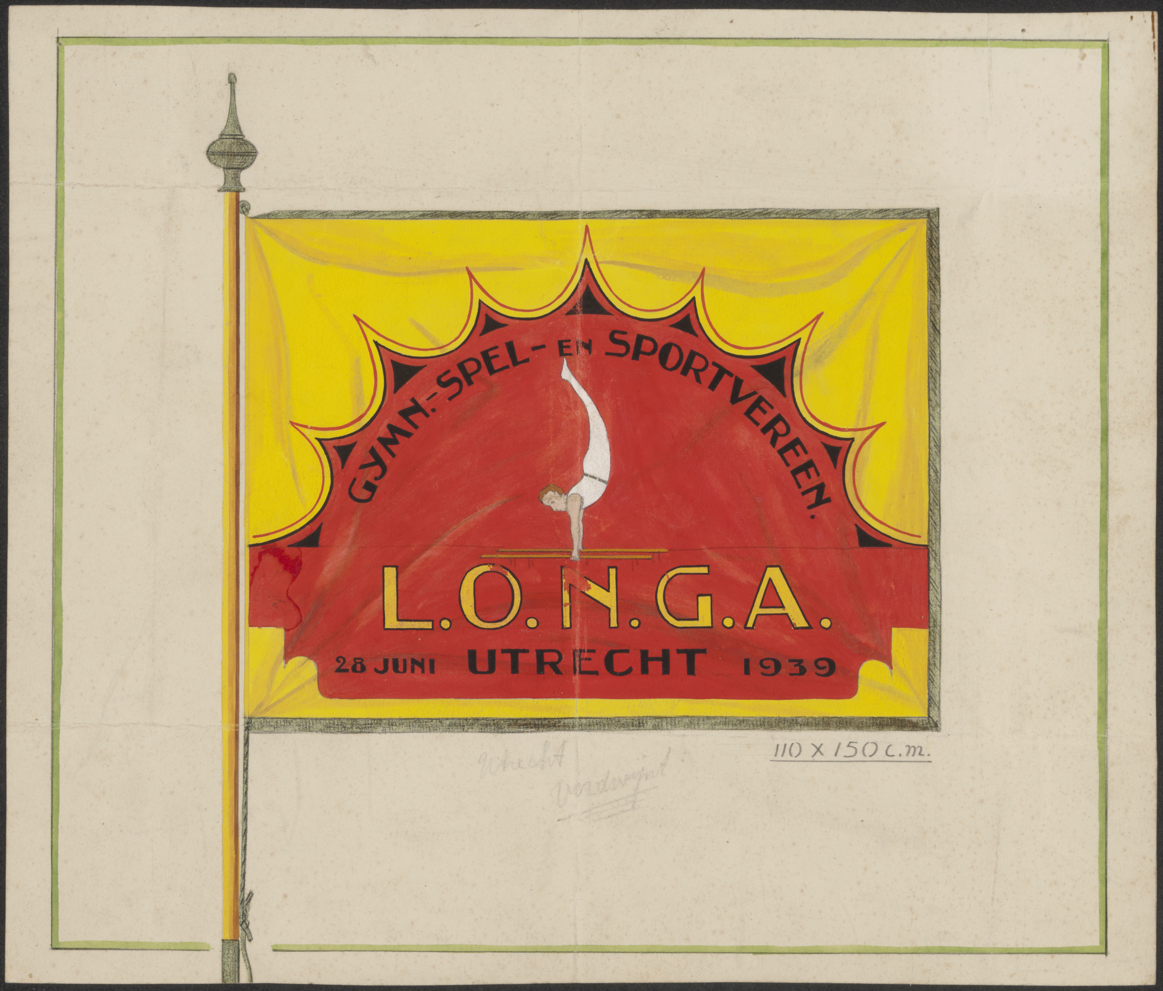 Een vlag van de Gymnastiek- Spel- en Sportvereniging Longa te Utrecht, opgericht 28 …