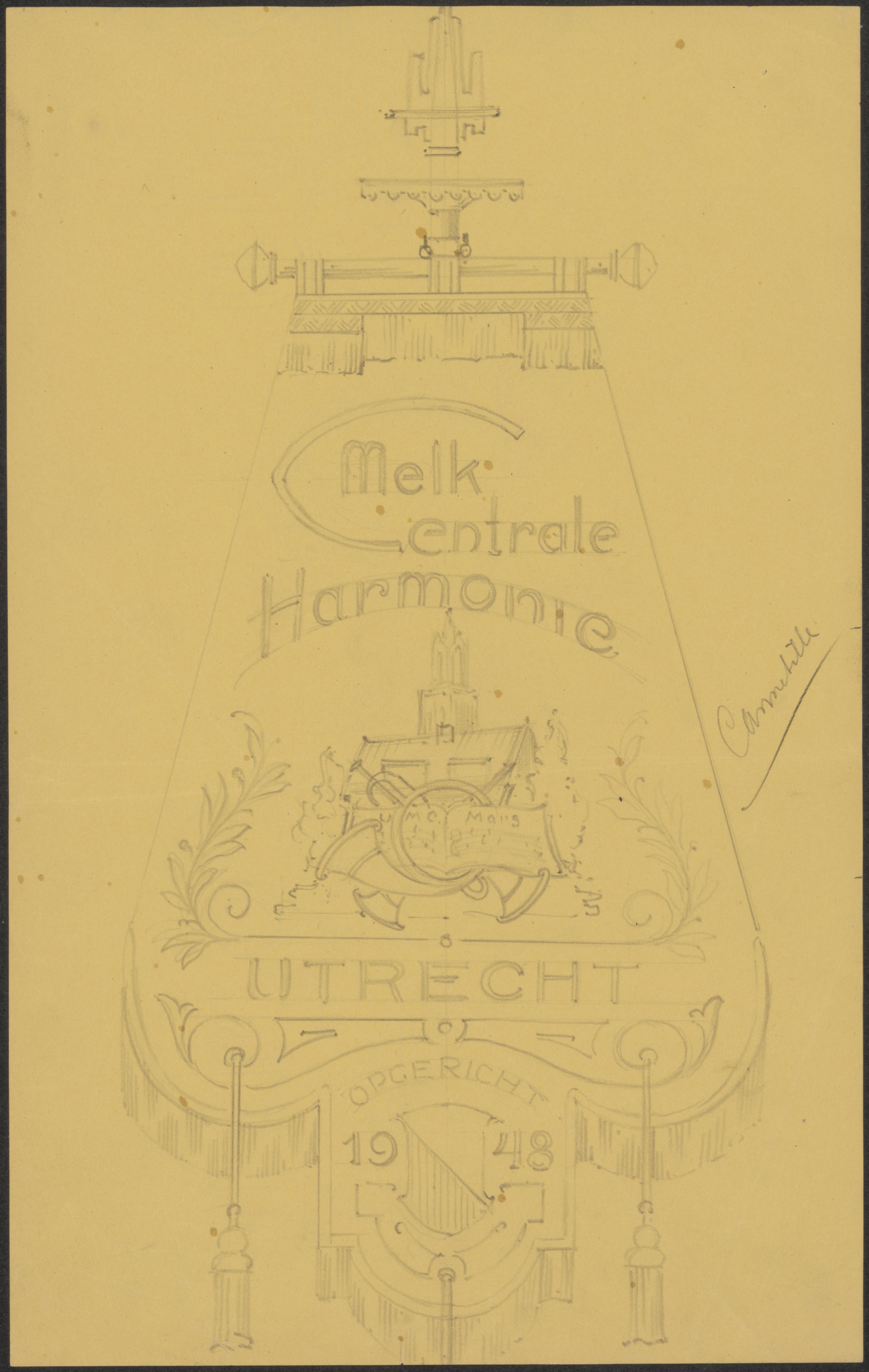 Een vaandel van de Melkcentrale 'Harmonie' te Utrecht, opgericht 1948.