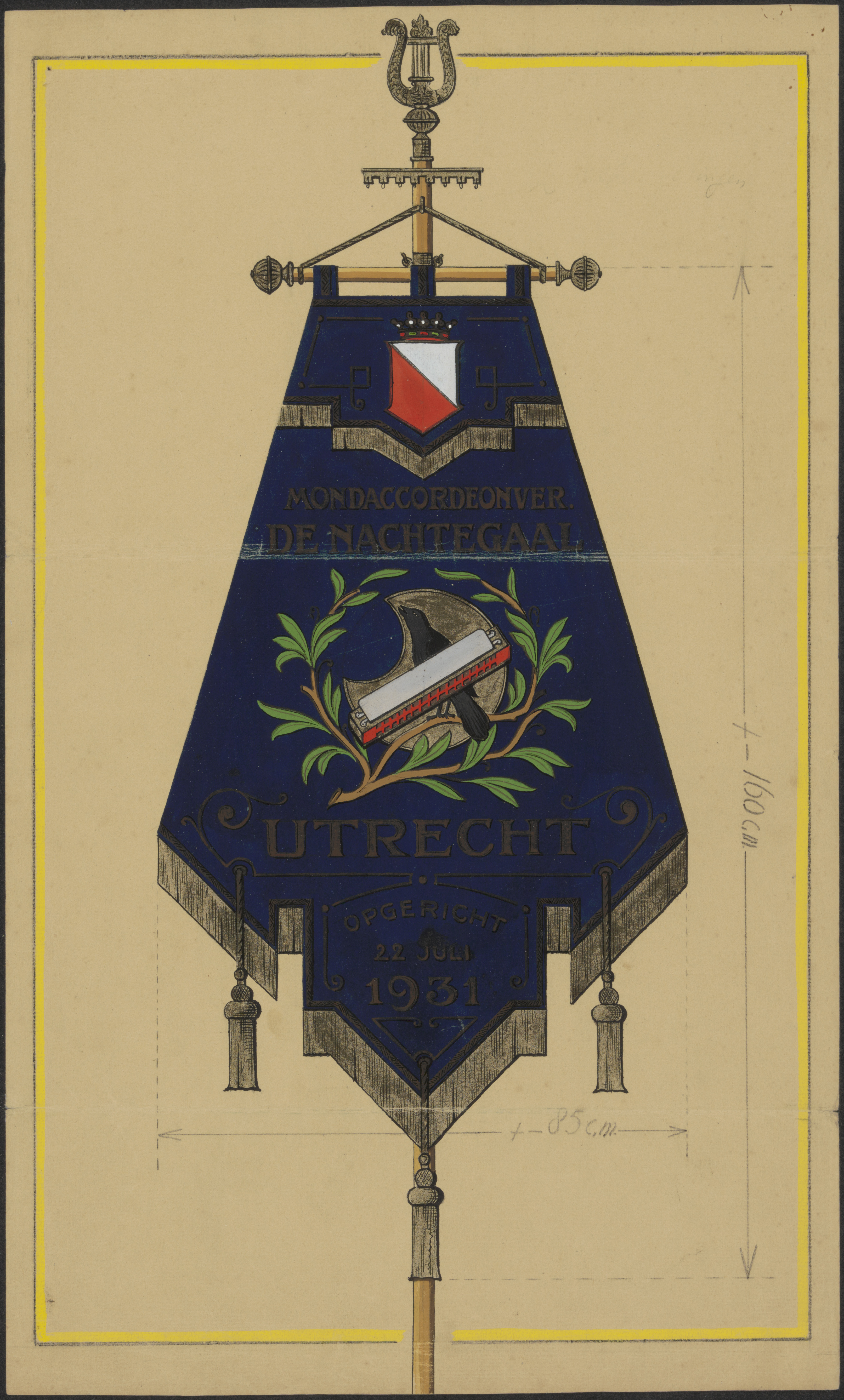 - Een vaandel van de Mondaccordeon-vereniging 'De Nachtegaal' te Utrecht, opgericht 22 juli 1931.