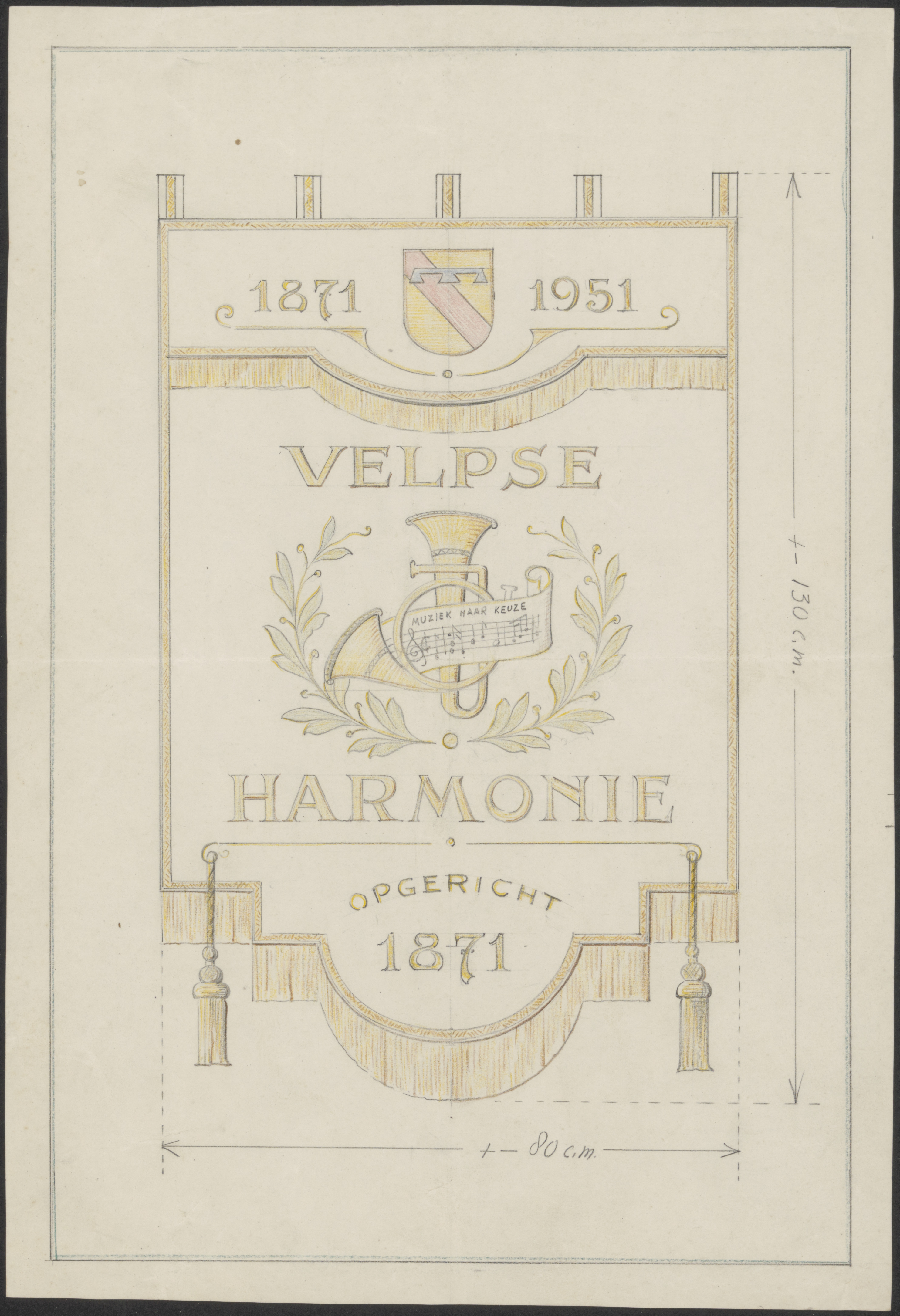 Een vaandel van de Velpse Harmonie (1871 - 1951); opgericht 1871.