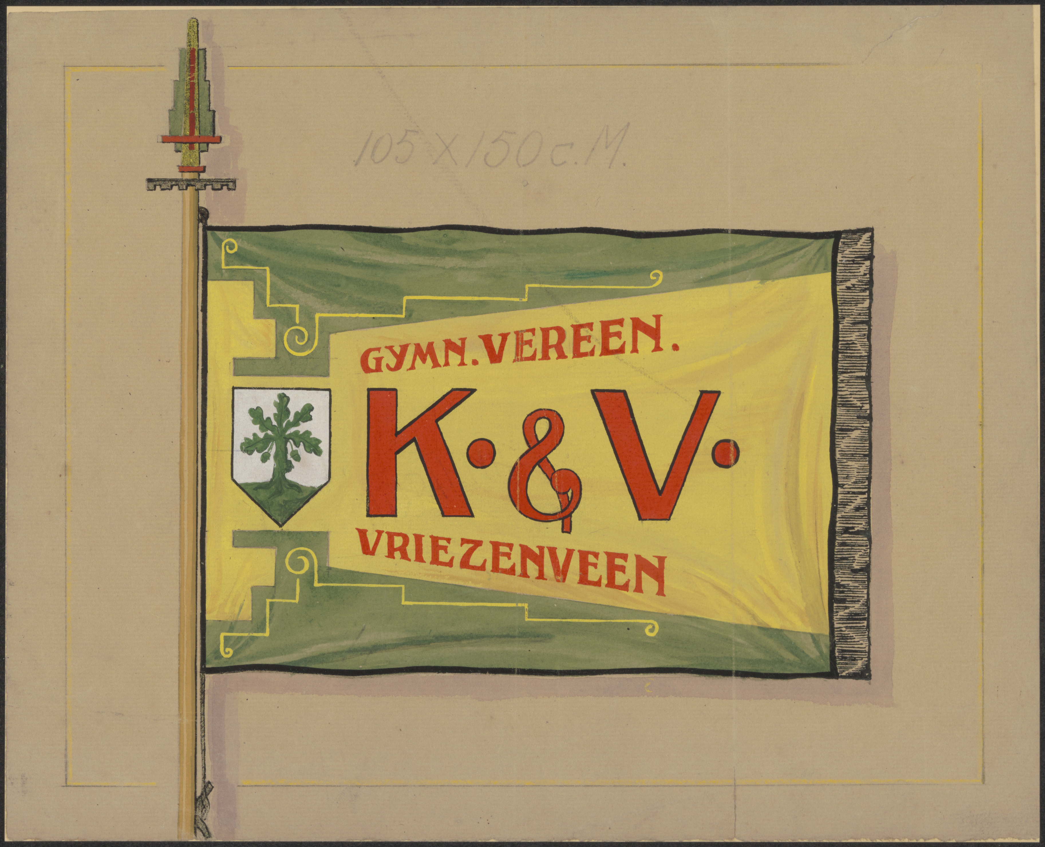 - Een vlag van de Gymnastiek Vereeniging K & V te Vriezeveen.