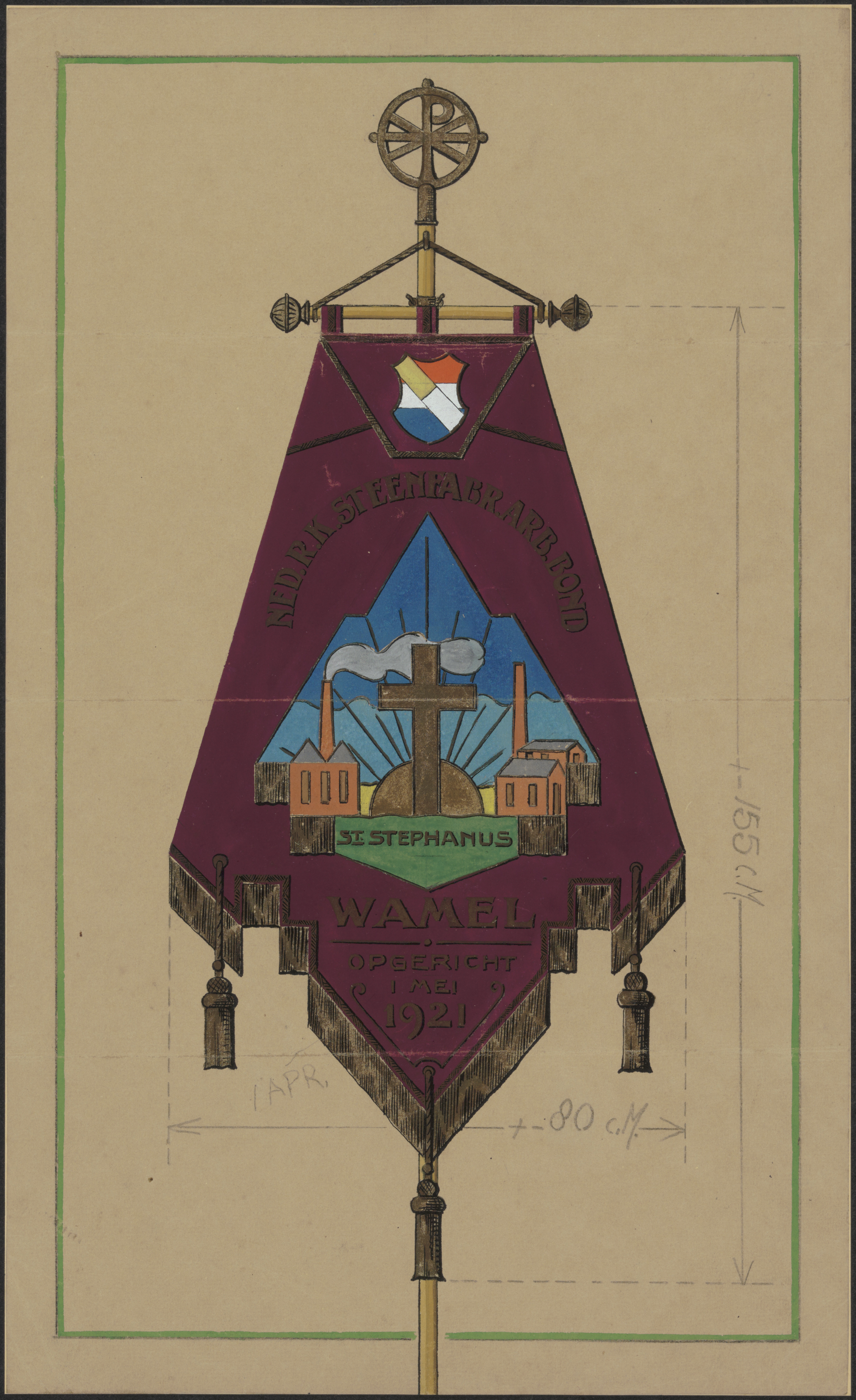 Een vaandel van de Ned. R.K. Steenfabriek - Arbeidersbond St. Stephanus te Wamel; …