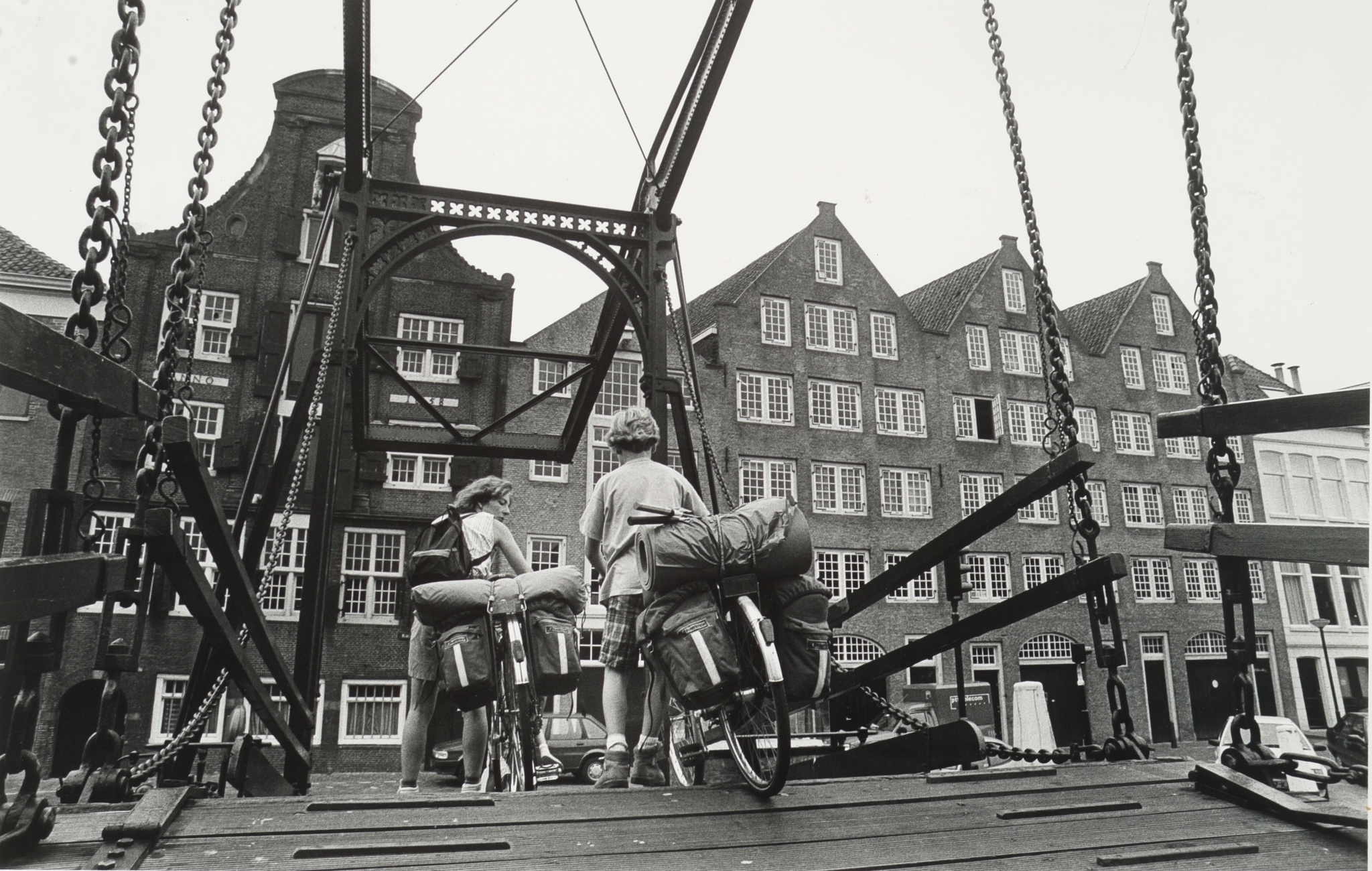 Twee bepakte fietsers op de Damiatebrug Kuipershaven