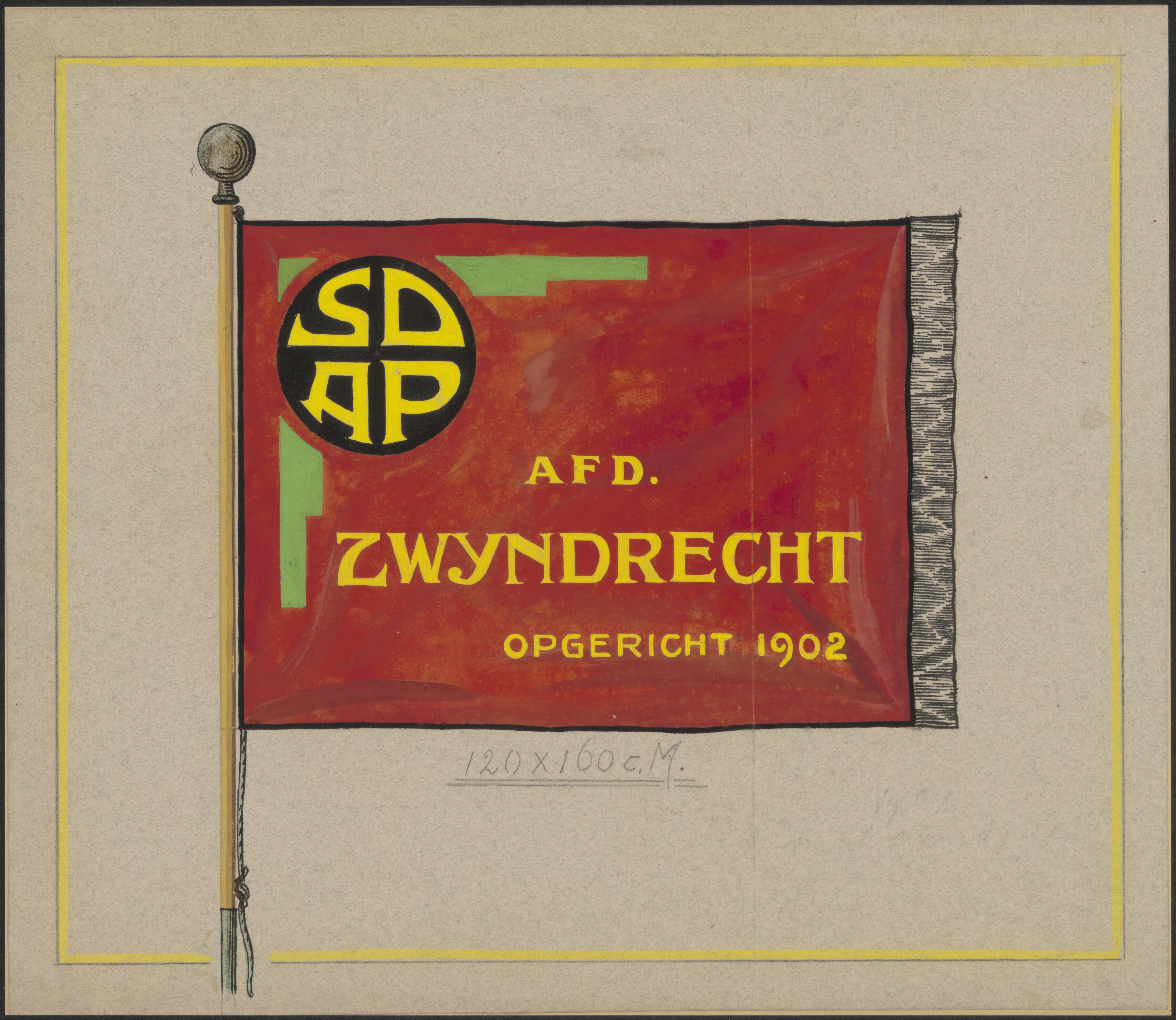 - Een vlag van de S.D.A.P. afd. Zwijndrecht; opgericht 1902.