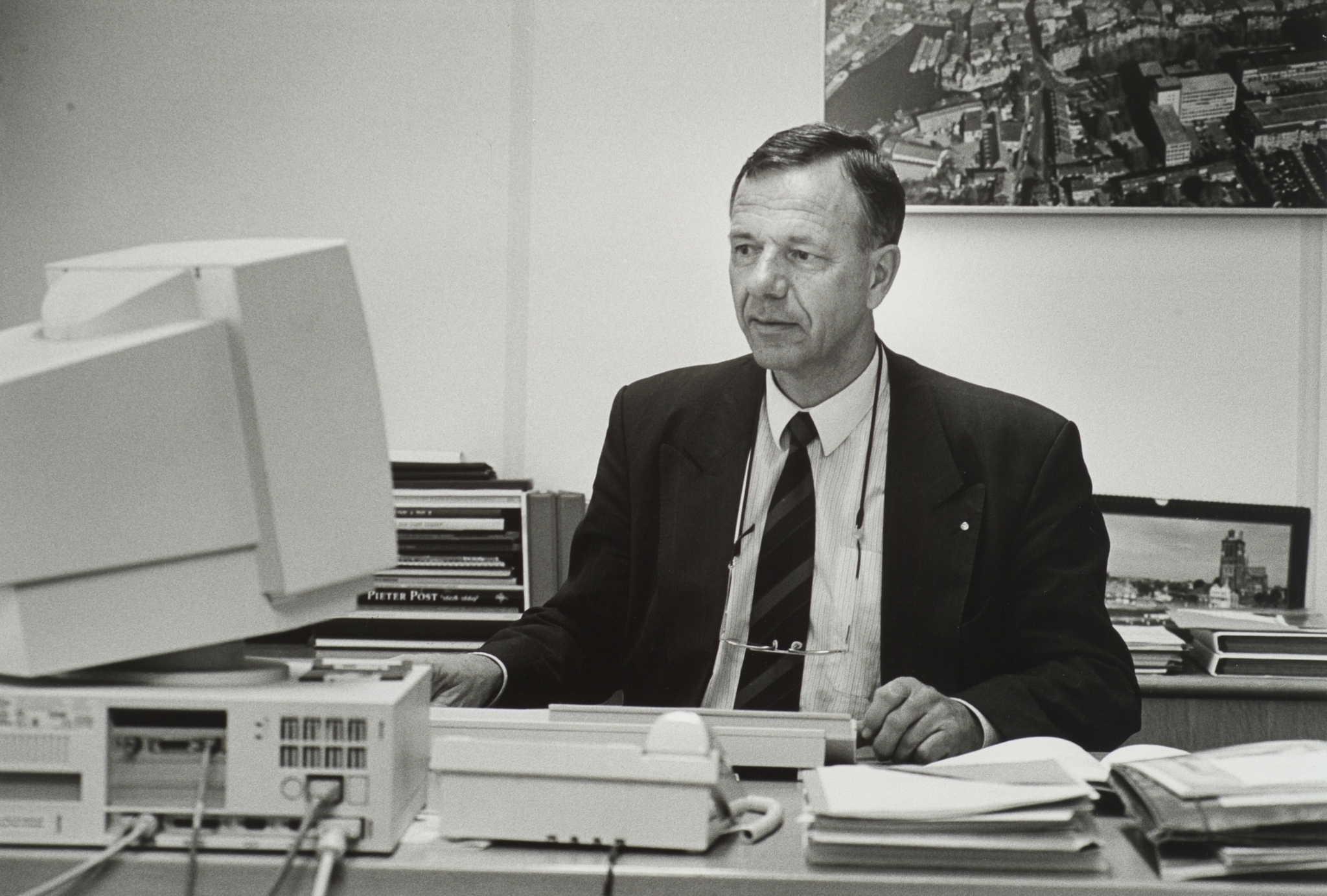 - De heer A. Zwols, directeur dienst openbare werken, aan zijn bureau op het Stadskantoor.