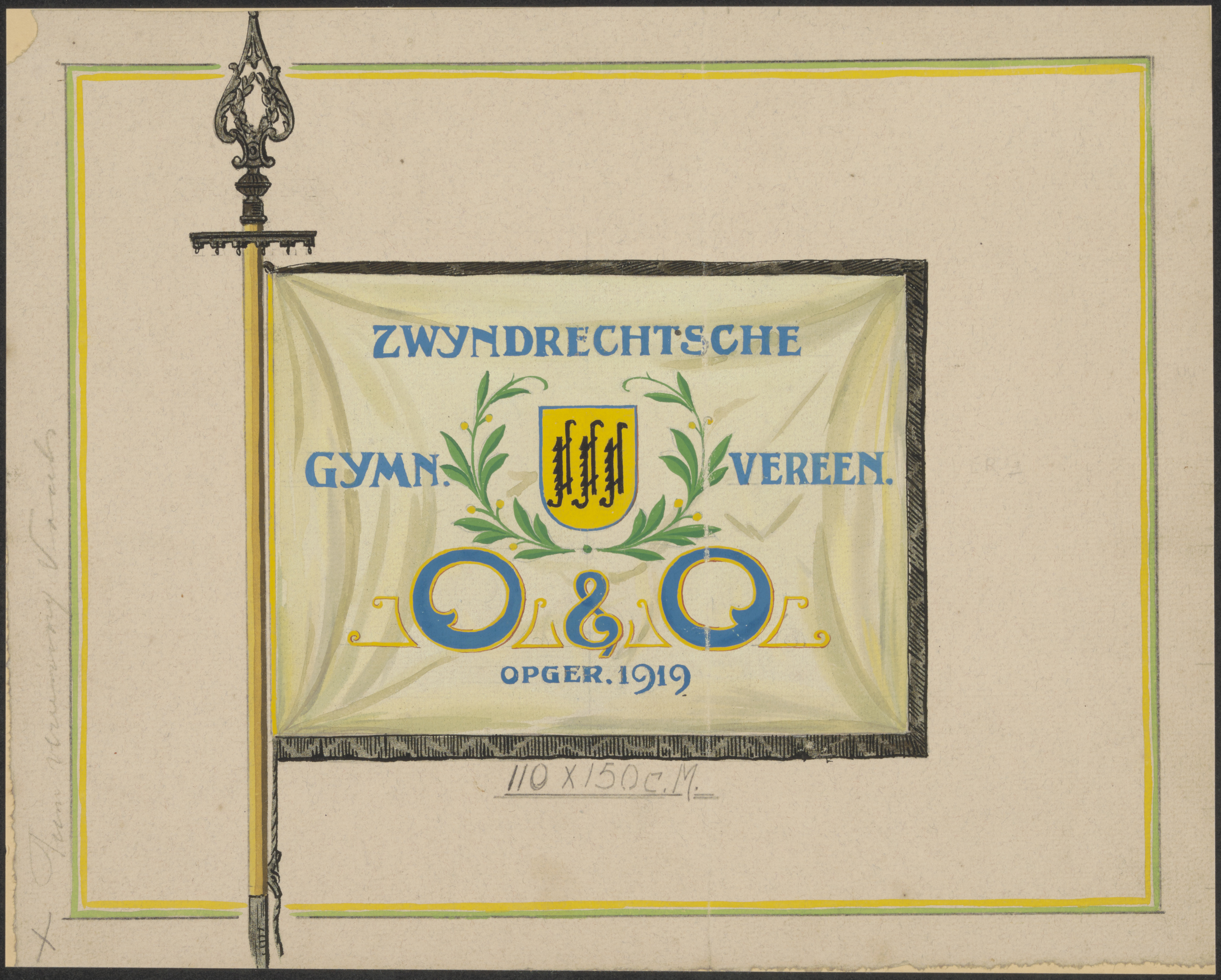 - Een vlag van de Zwijndrechtsche Gymnastiek-vereniging O. en O., opgericht 1919.