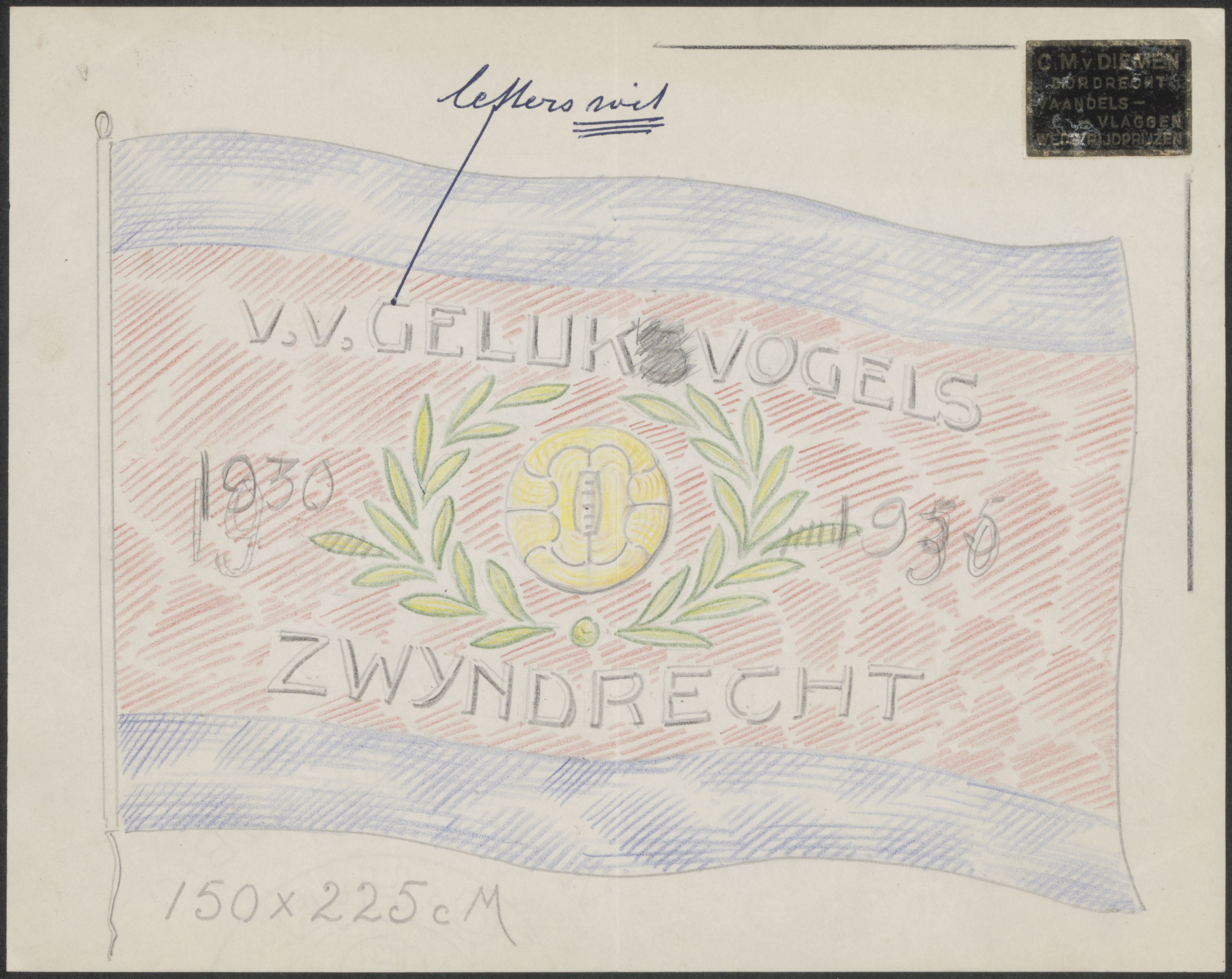 Een vlag van de Voetbal-vereeniging 'Gelukvogels' te Zwijndrecht, 1930 - 1955.