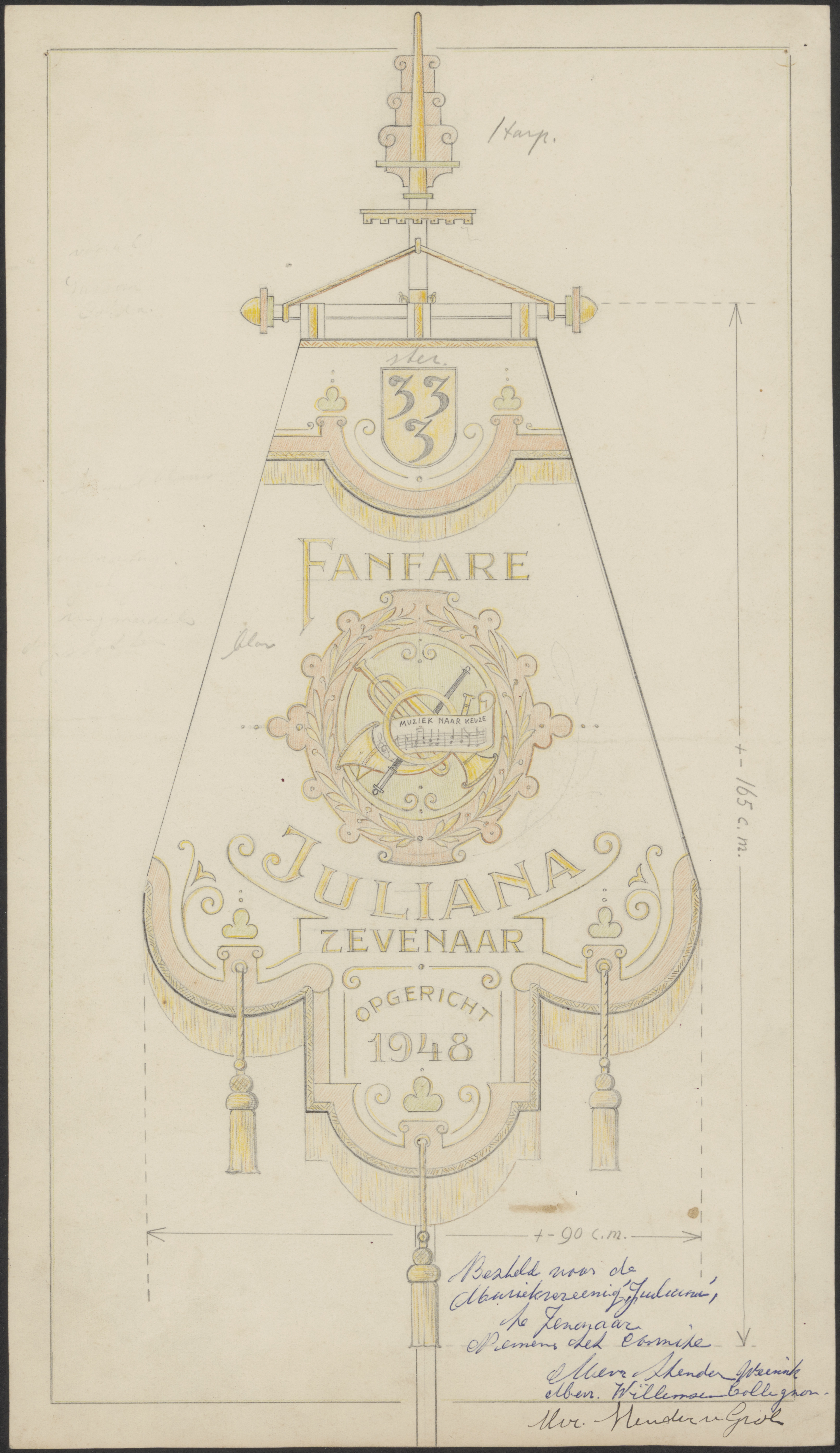 - Een vaandel van de fanfare 'Juliana' te Zevenaar; opgericht 1948.