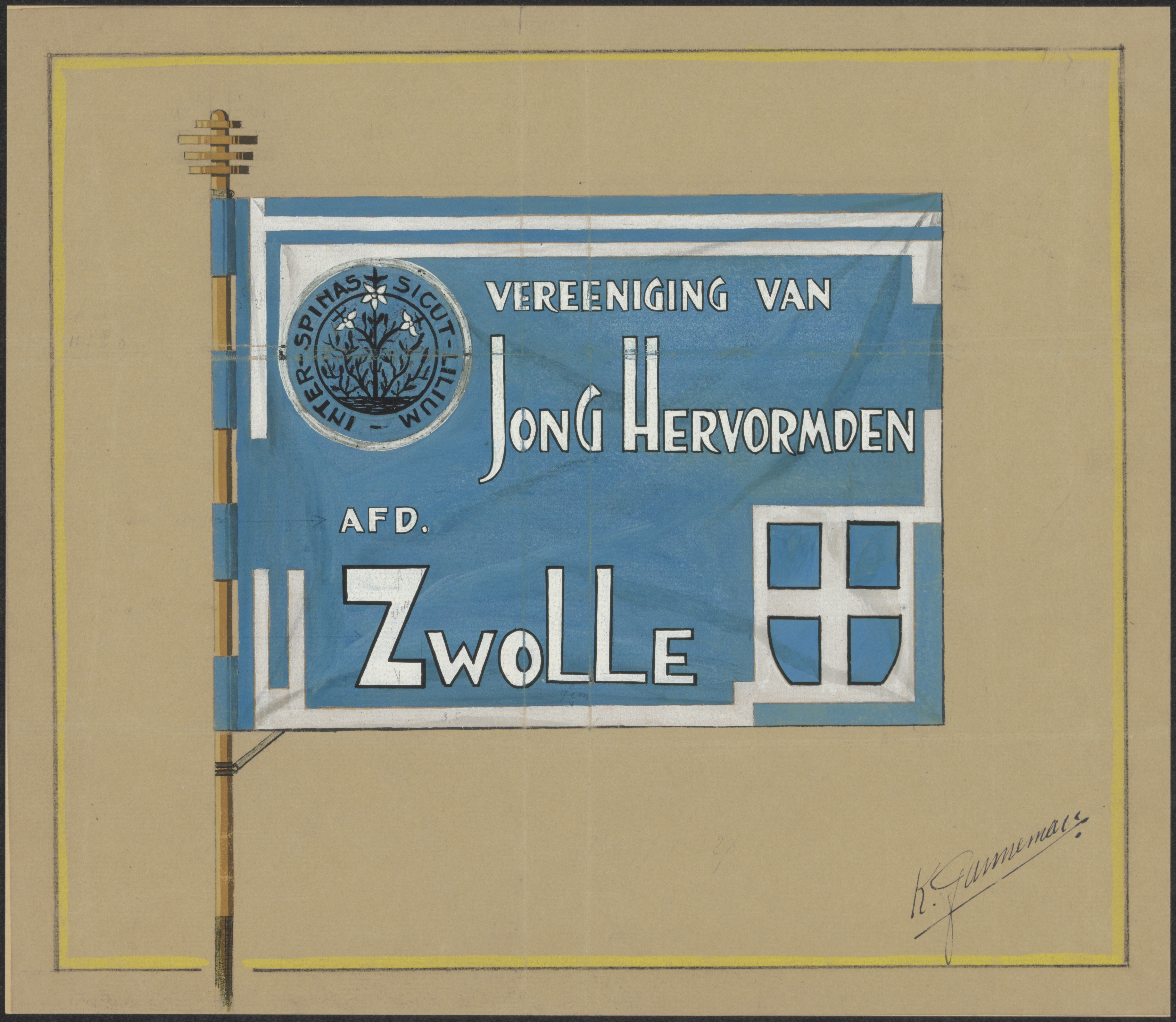 - Een vlag van de vereeniging van Jong Hervormden, afd. Zwolle.