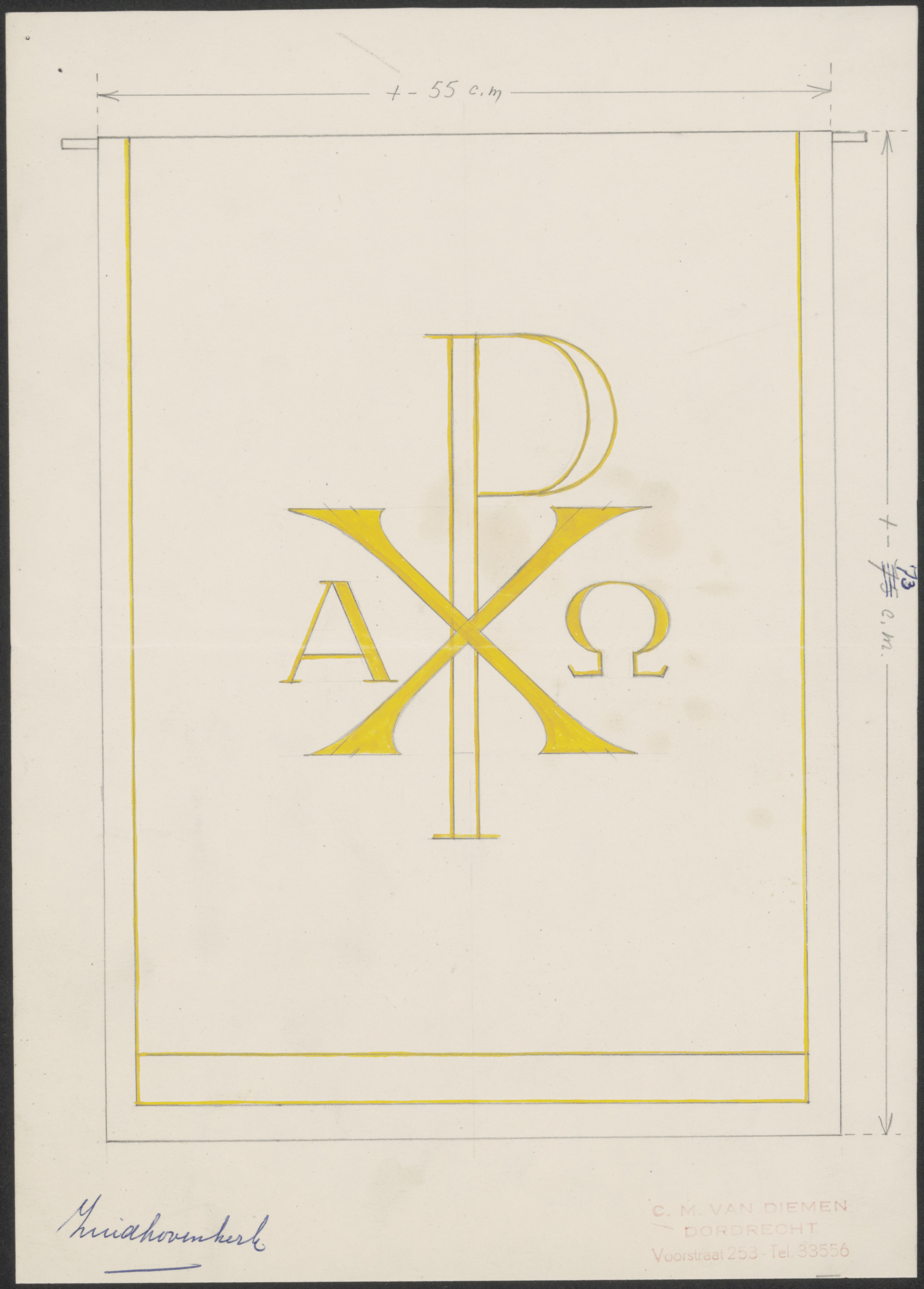 - Een vlag of doek van de voorstelling Antependium in de Zuidhovenkerk te Dordrecht.