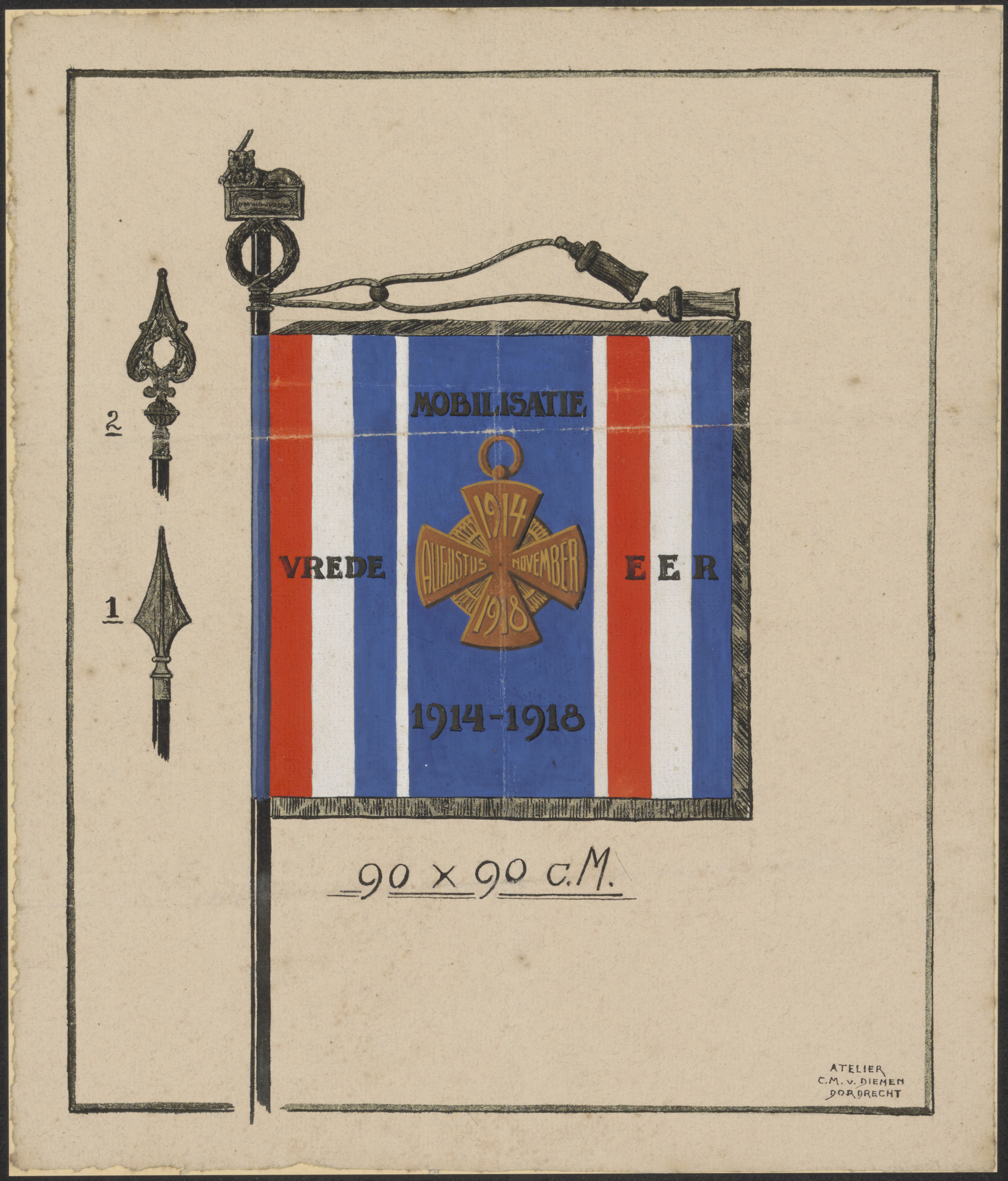 - Een mobiliatie vlag van de oorlog 1914 - 1918 (Vrede - Eer).