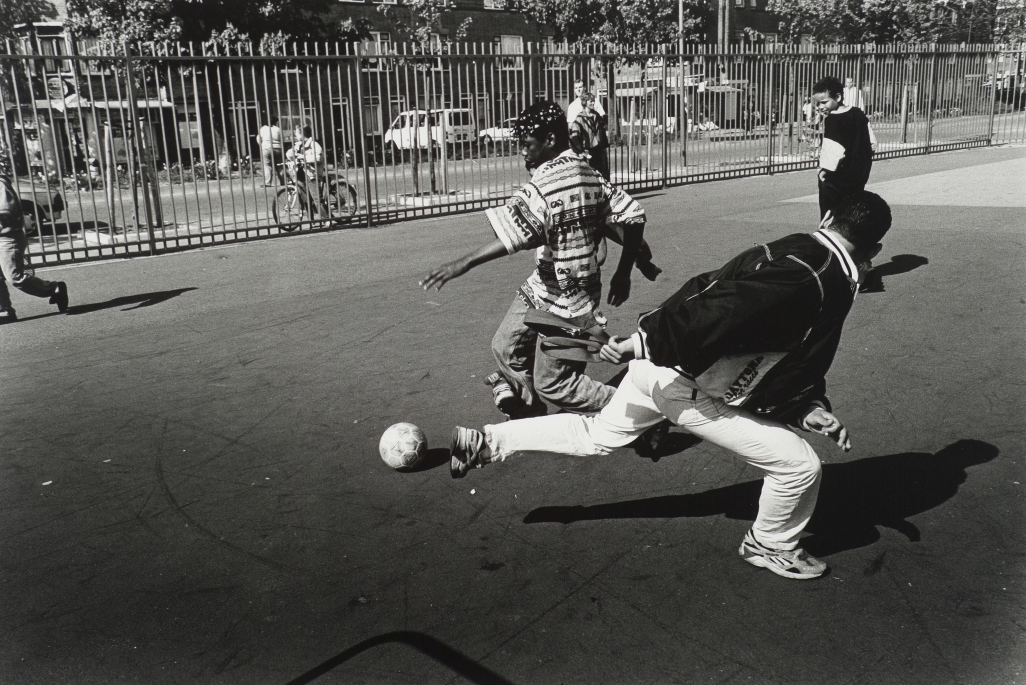 - Jeugd in de voetbalkooi op het Jozef Israëlsplein langs de Jacob Marisstraat.