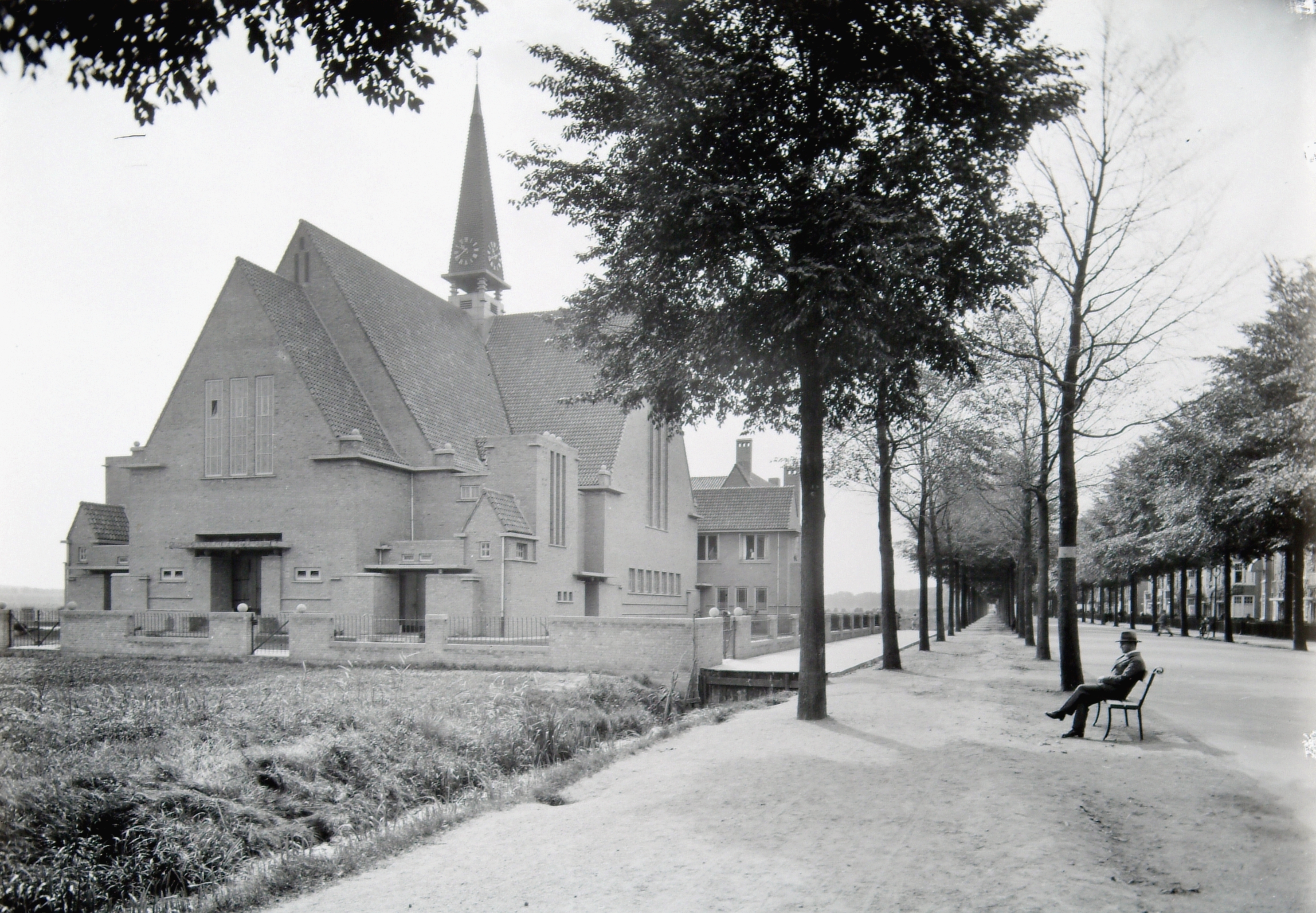 - Een man zit op een bankje bij de Julianakerk