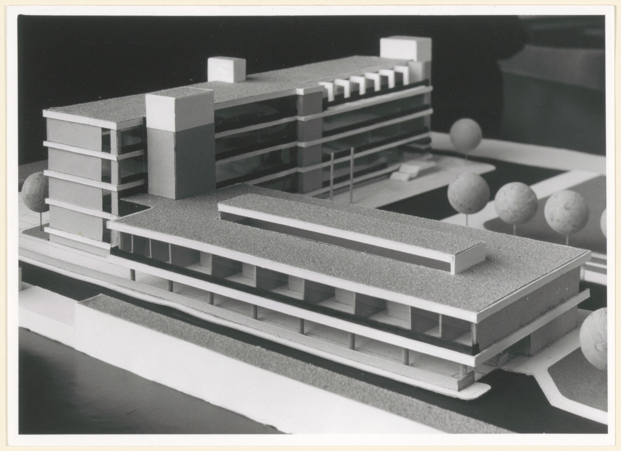 - Maquette van het te bouwen kantoor van het GAK en voor de Raad van Arbeid aan de Van Godewijckstraat.