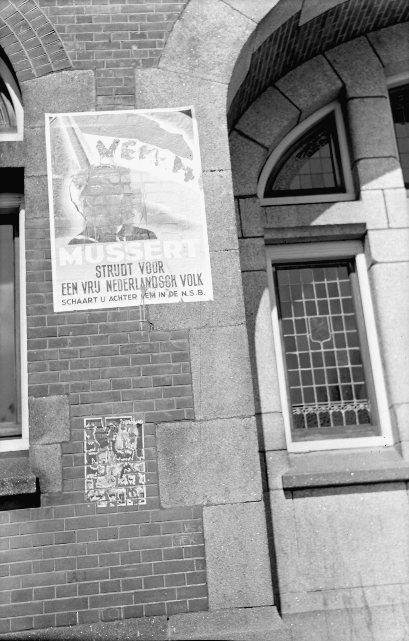 - Een aanplakbiljet voor verkiezingen bij de hoofdingang van de HBS in het Oranjepark.