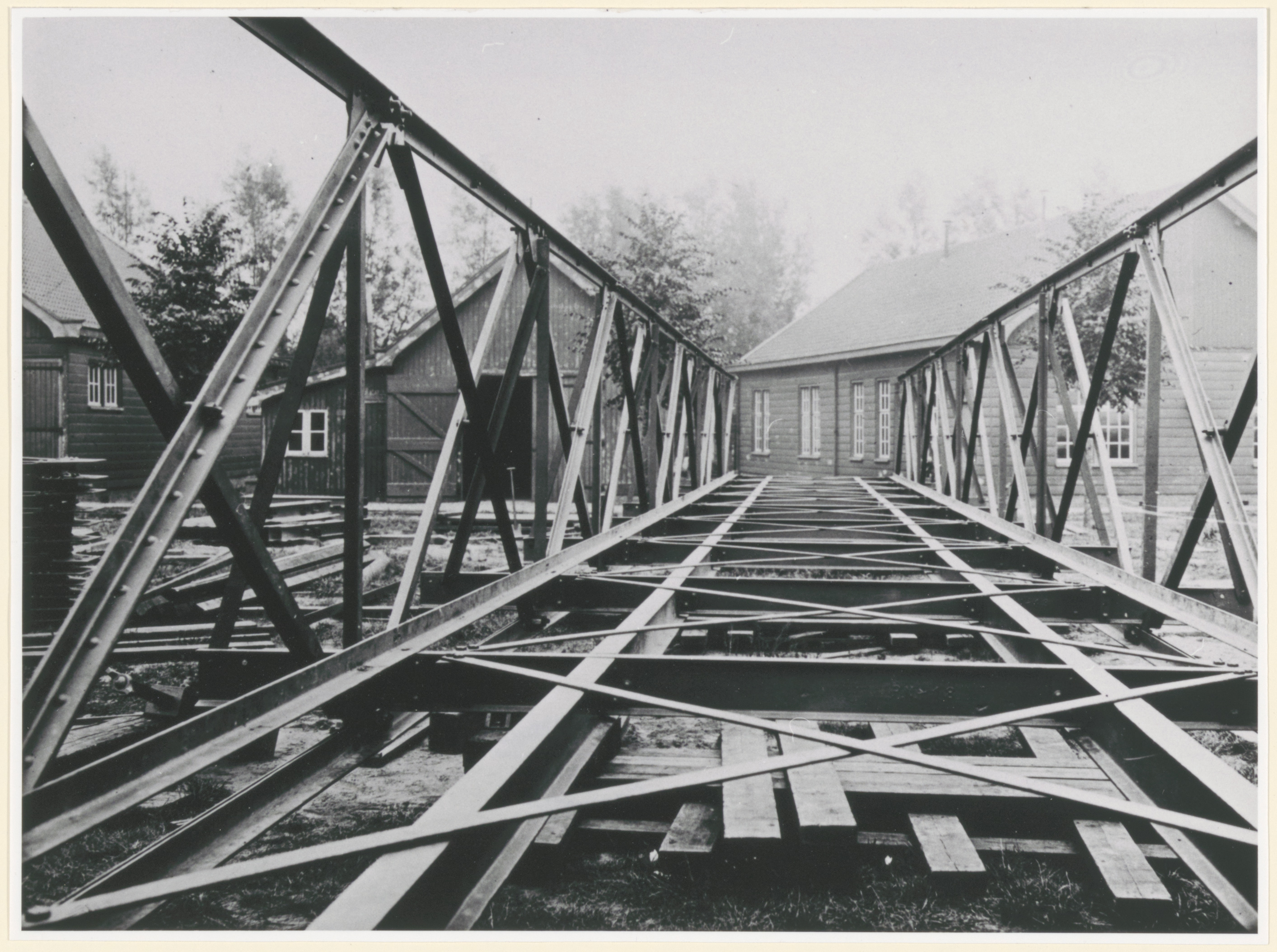 - Een stalen brug liggend op het oefenterrein van de pontonniers te Papendrecht.