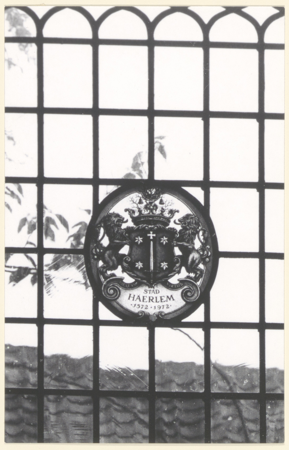 - Het medaillon is getekend door dhr. Fokke van architectenbureau Kruger in Voorburg en uitgevoerd door glasatelier Bogtman in Haarlem.