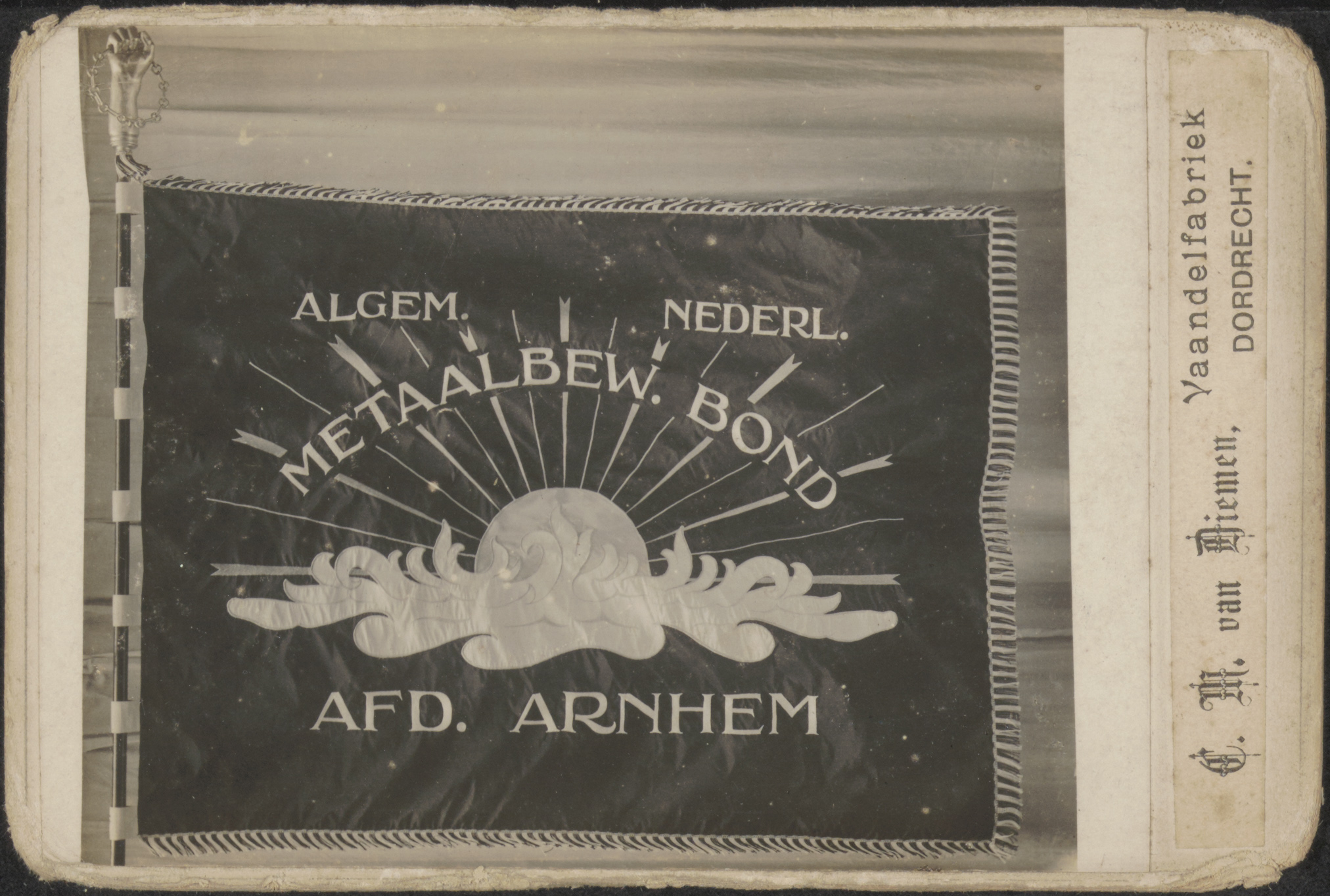 - Een vlag van de Algemene Nederlandse Metaalberwerkersbond, afd Arnhem.