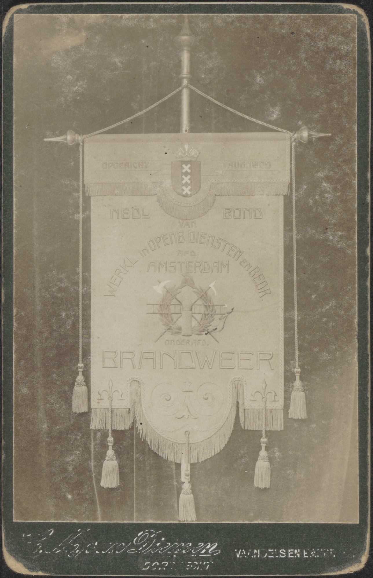 - Een vaandel van de werklieden in Openbare Diensten en bedrijven, afd. Amsterdam; onderafd. Brandweer; opgericht 1 augustus 1900.