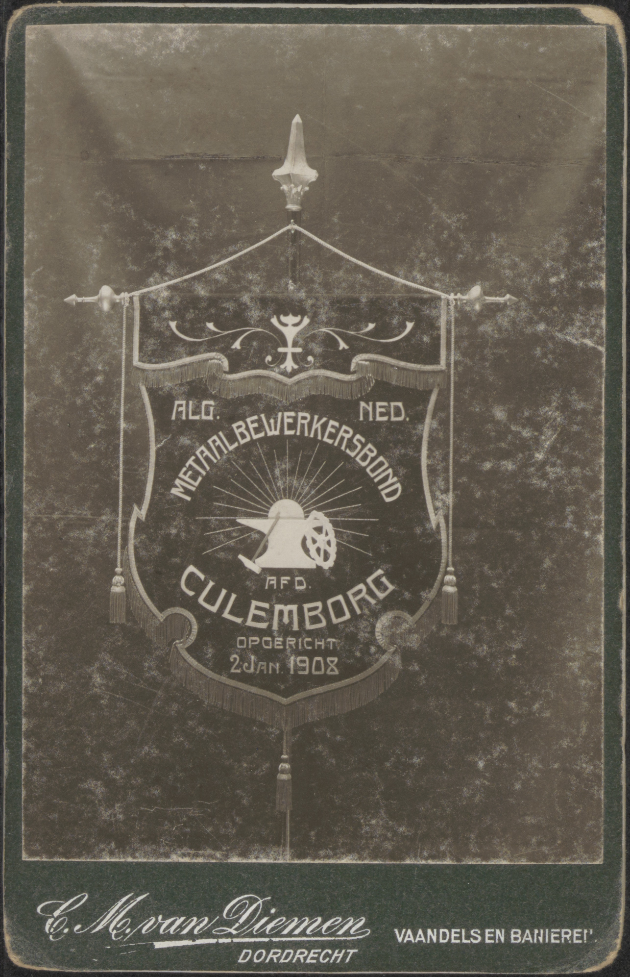 - Een vaandel van de Algemeene Nederlandsche Metaalbewerkersbond, afd. Culemborg; opgericht 2 januari 1908.