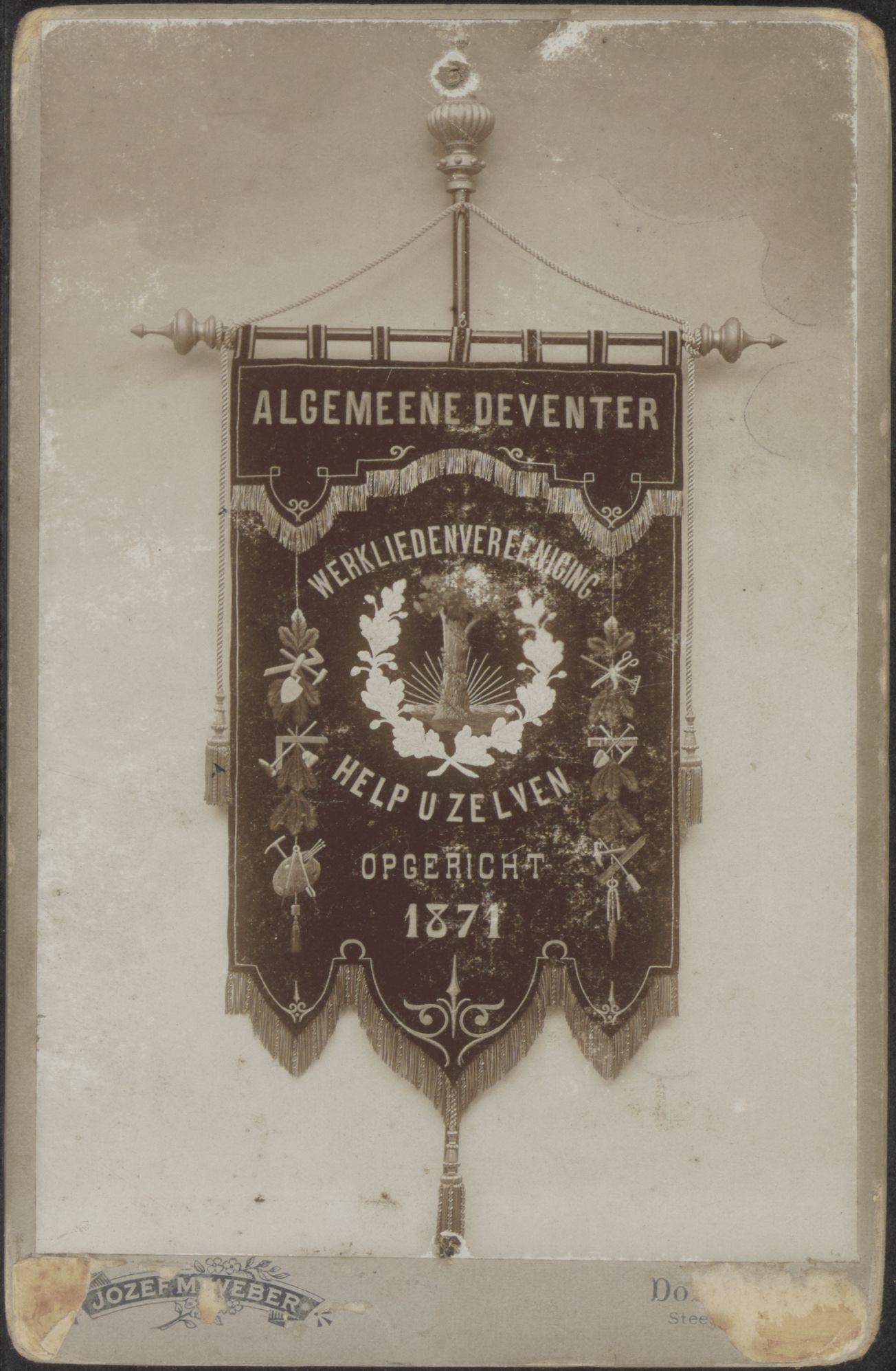 - Een vaandel van de Algemeene Deventer Werkliedenvereeniging "Help U Zelven", opgericht 1871.