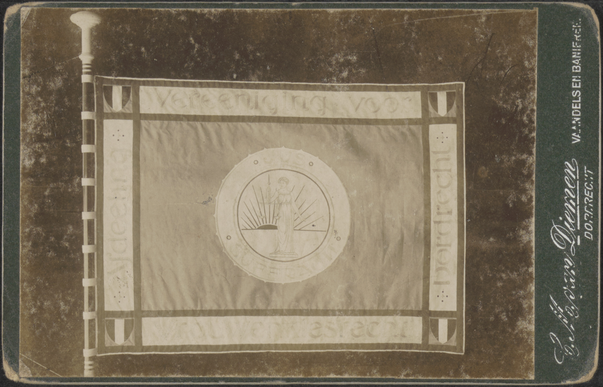 - Een vlag van de Vereeniging voor Vrouwenkiesrecht, afdeling Dordrecht.