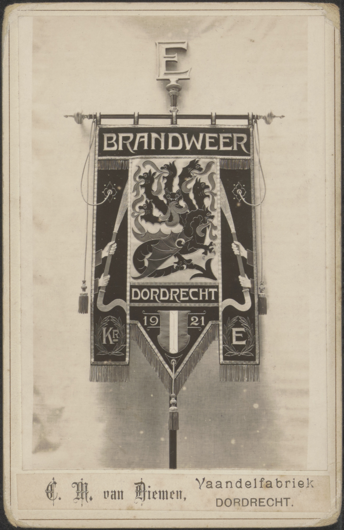 - Een vaandel van de Brandkring E. van de Vrijwillige Brandweer Dordrecht, 1921.
