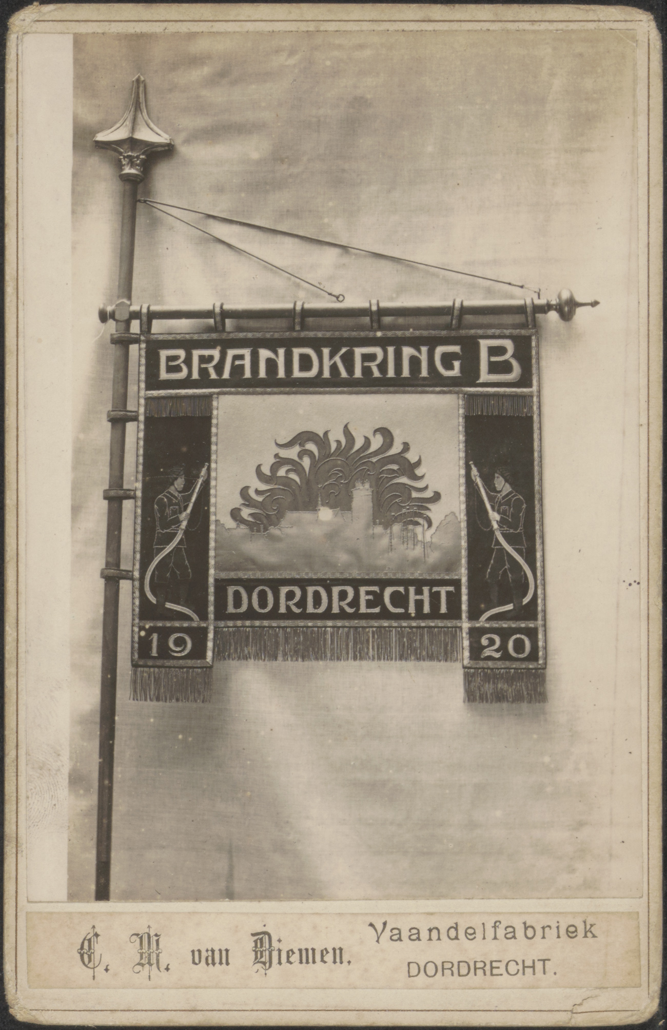 Een vlag van de brandkring B. van de Vrijwillige Brandweer Dordrecht, 1920.