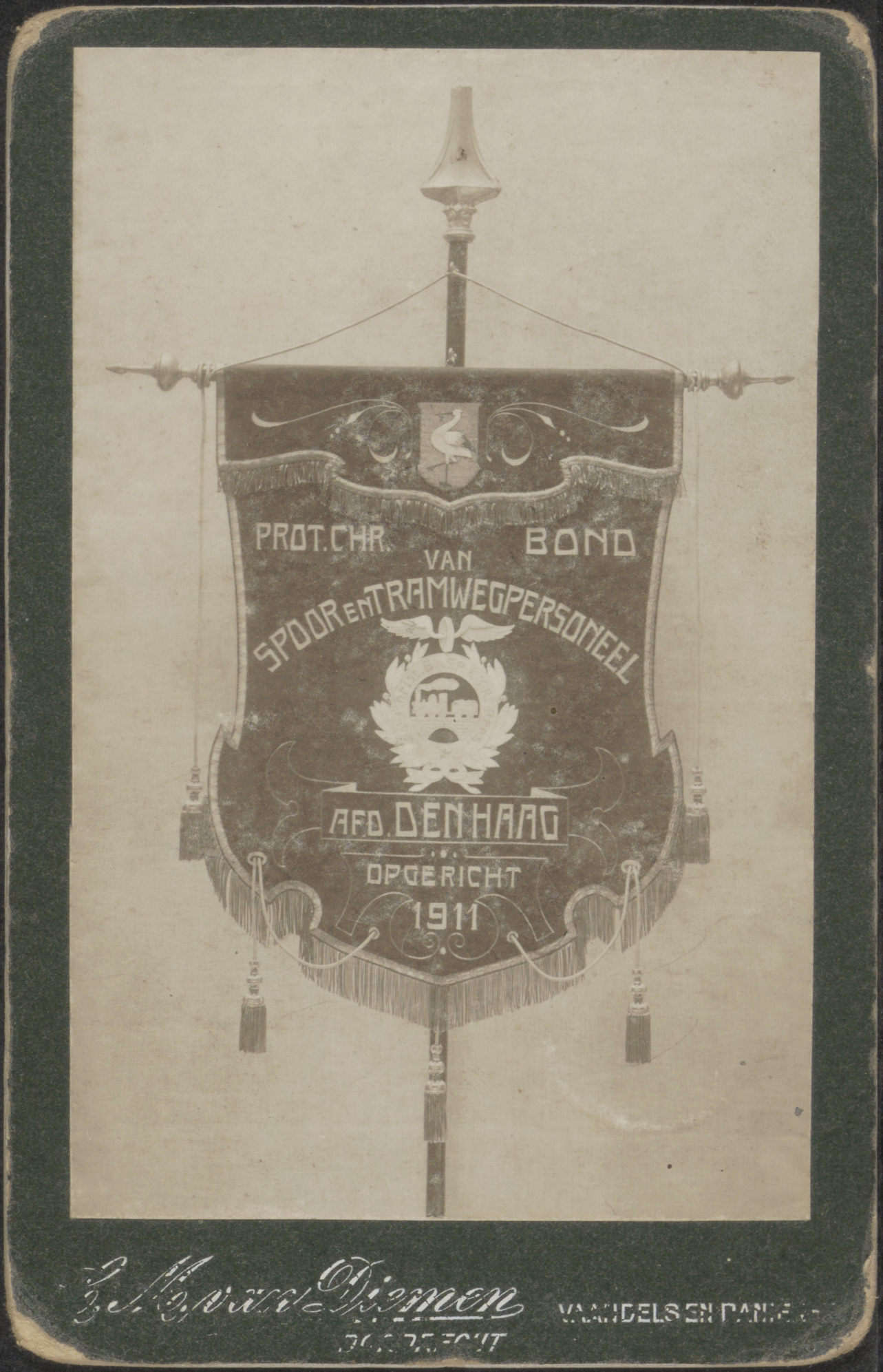 - Een vaandel van de Protestante Christelijke Bond van Spoor- en Tramwegpersoneel, afd Den Haag, opgericht 1911.