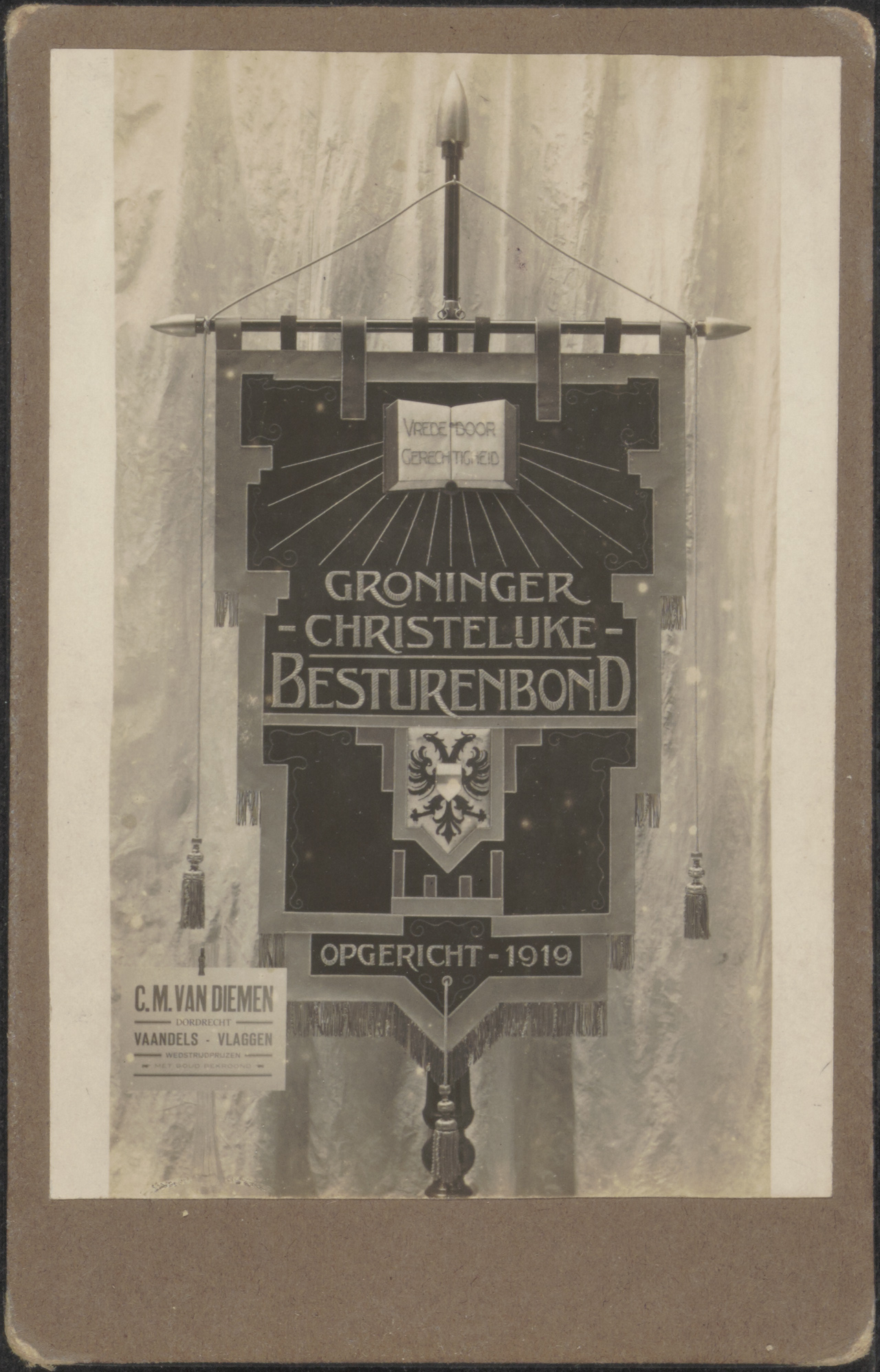 - Een vaandel van de Groninger Christelijke Besturenbond, opgericht 1919.