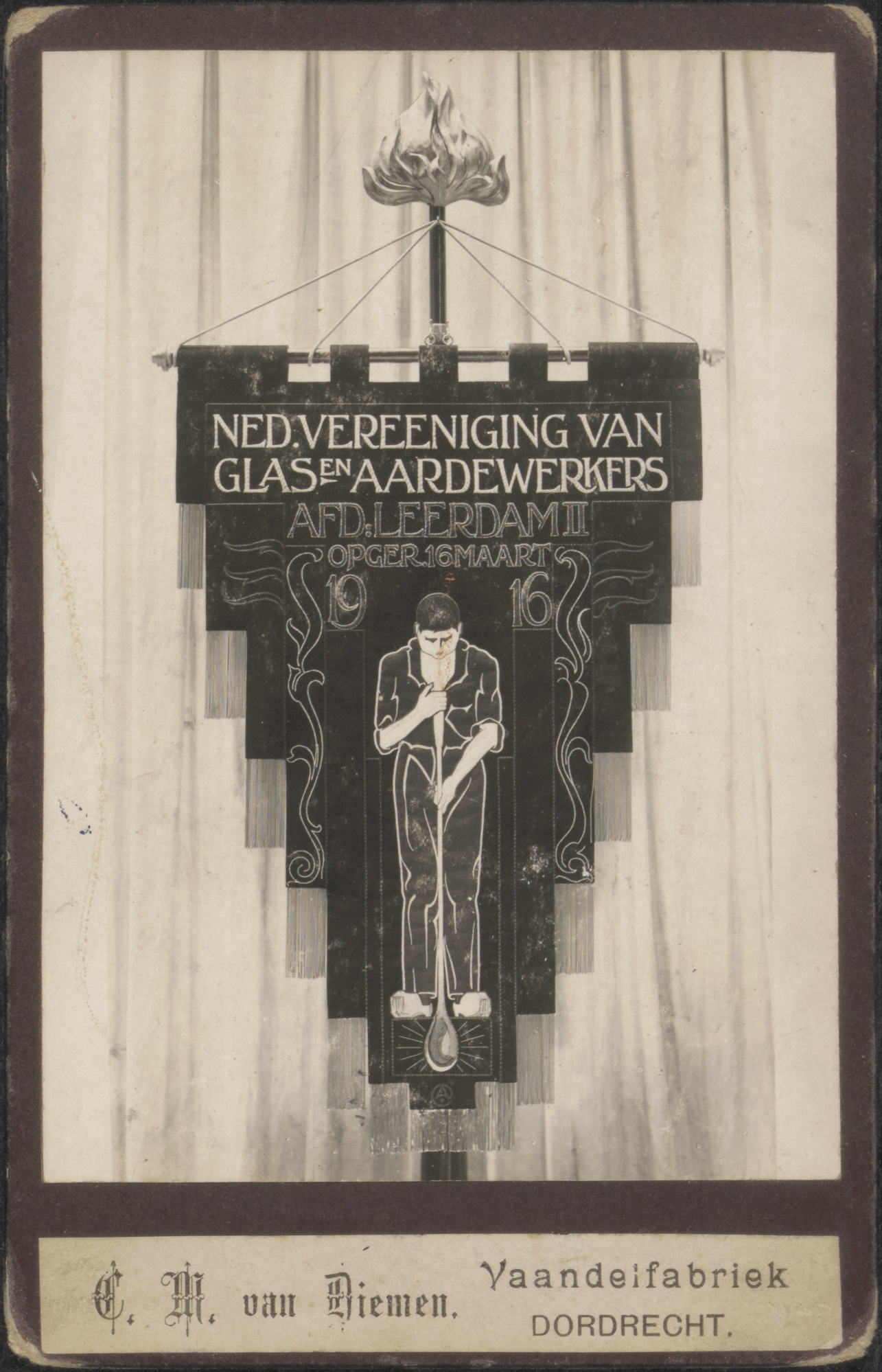 - Een vaandel van de Nederlandsche Vereeniging van Glas en Aardewerkers afd. Leerdam; opgericht 16 maart 1916.