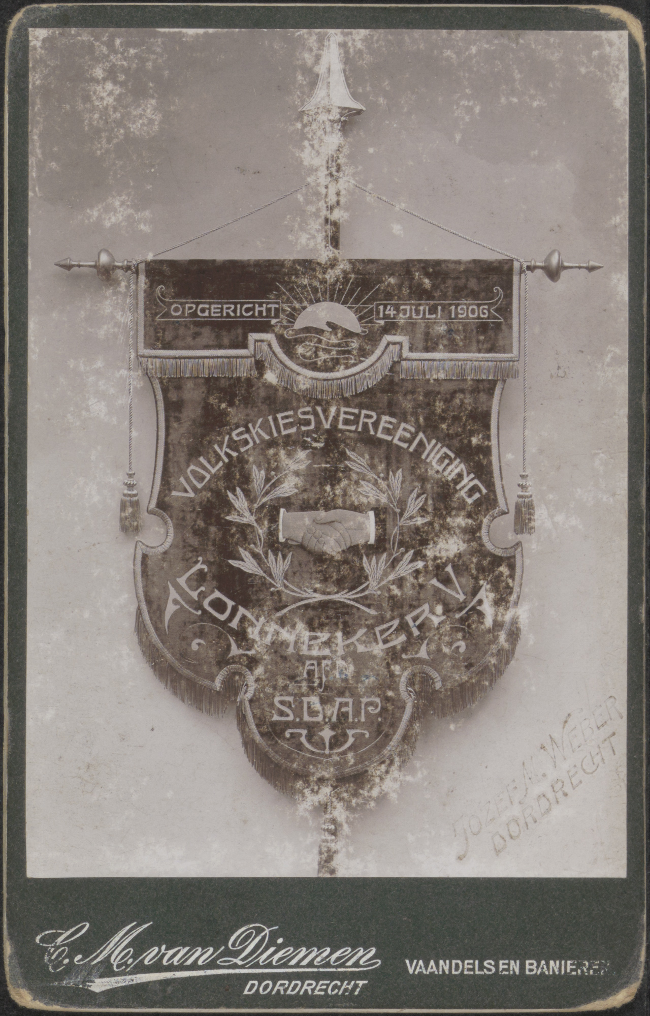 - Een vaandel van de Volkskiesvereeniging Lonneker, afd. S.D.A.P.; opgericht 14 juli 1906.
