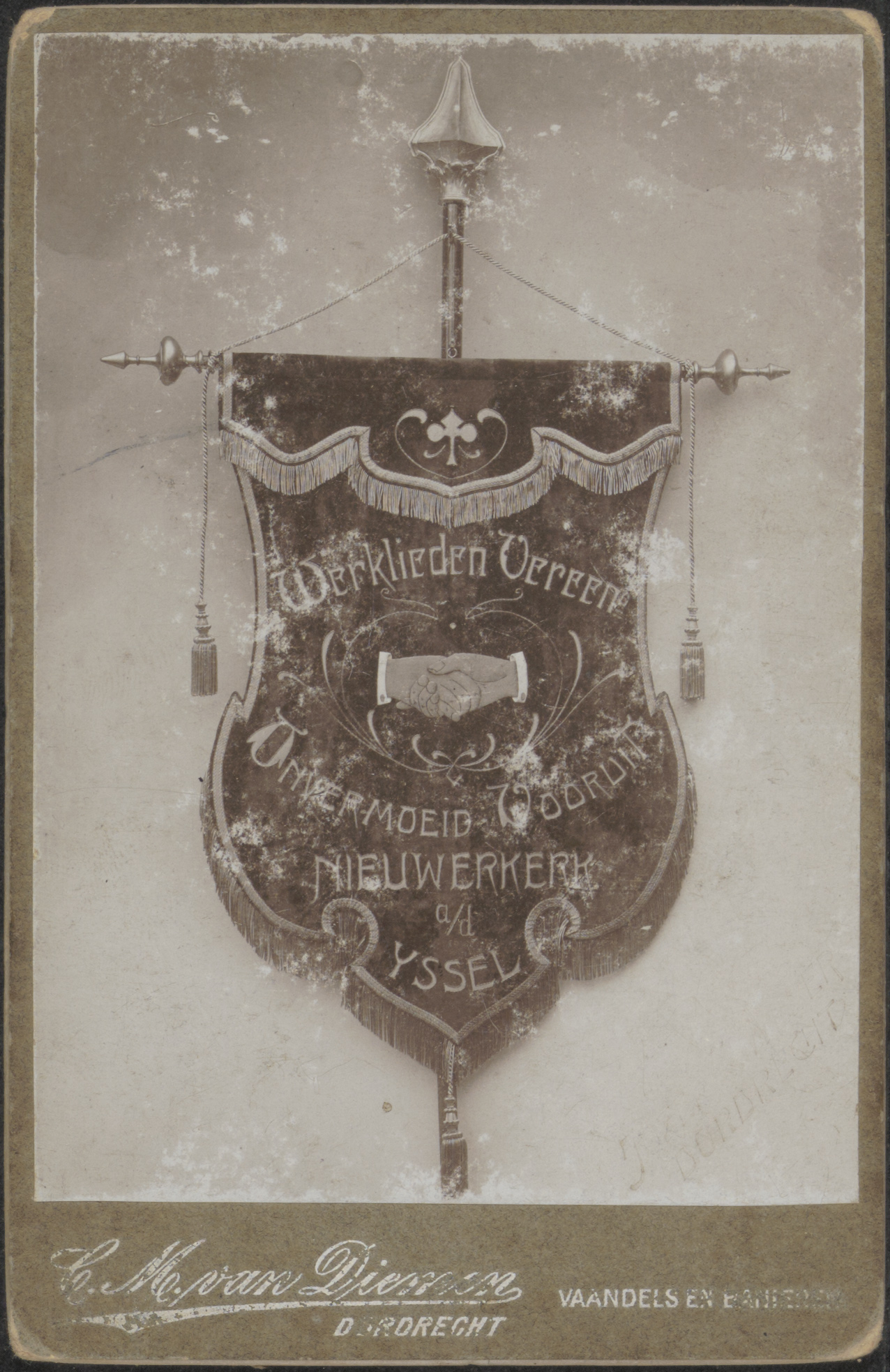 - Een vaandel van de Werkliedenvereeniging "Onvermoeid Vooruit" te Nieuwerkerk a/d IJssel.