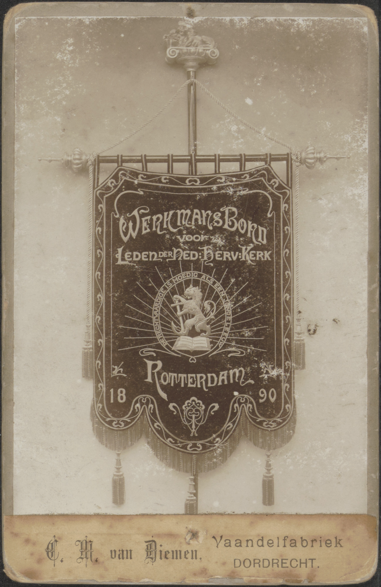 - Een vaandel van de Werkmansbond voor leden der Nederlands Hervormde Kerk te Rotterdam, 1890.