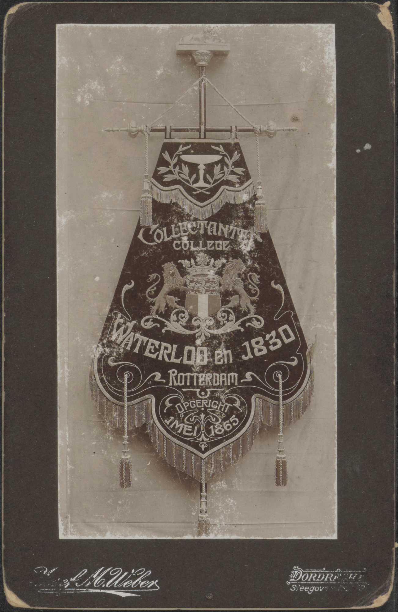 - Een vaandel van de Collectanten College Waterloo en 1830 te Rotterdam; opgericht 1 mei 1865.