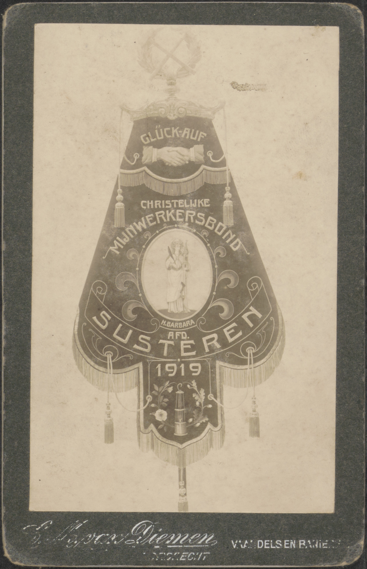 - Een vaandel van de Christelijke Mijnwerkersbond ( H. Barbara) (Clück - Auf) afd. Susteren, 1919.