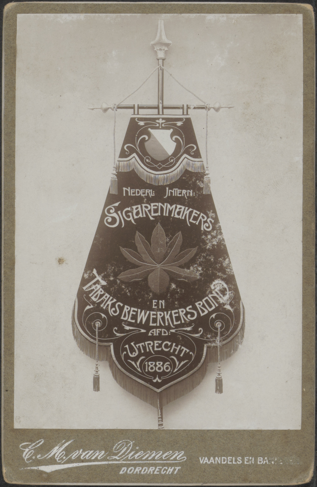 - Een vlag van de Nederlandsche Internationale Sigarenmakers en Tabaksbewerkersbond afd. Utrecht, 1886.