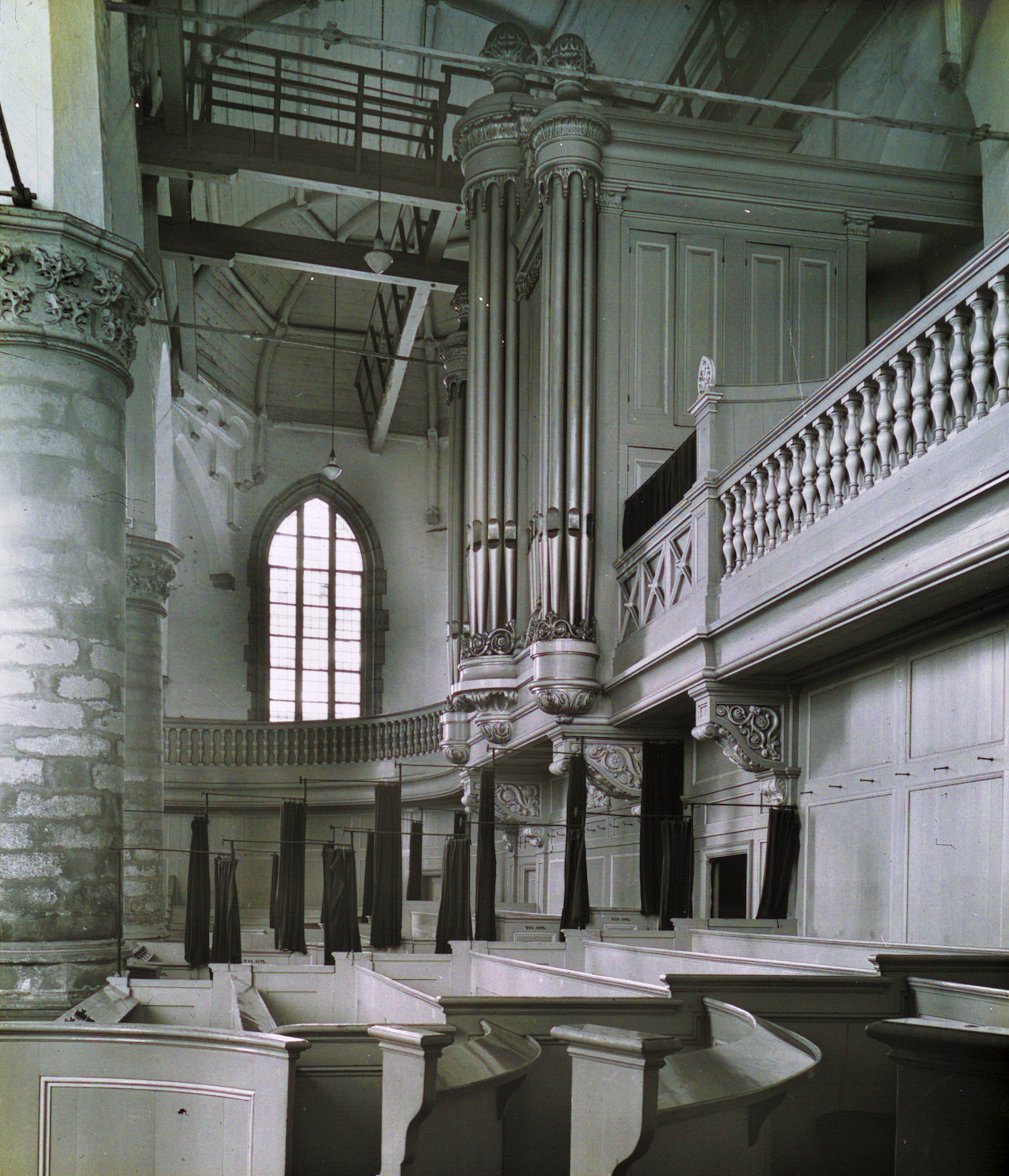 De Nieuwkerk met het gezicht naar het orgel en de balustrade.