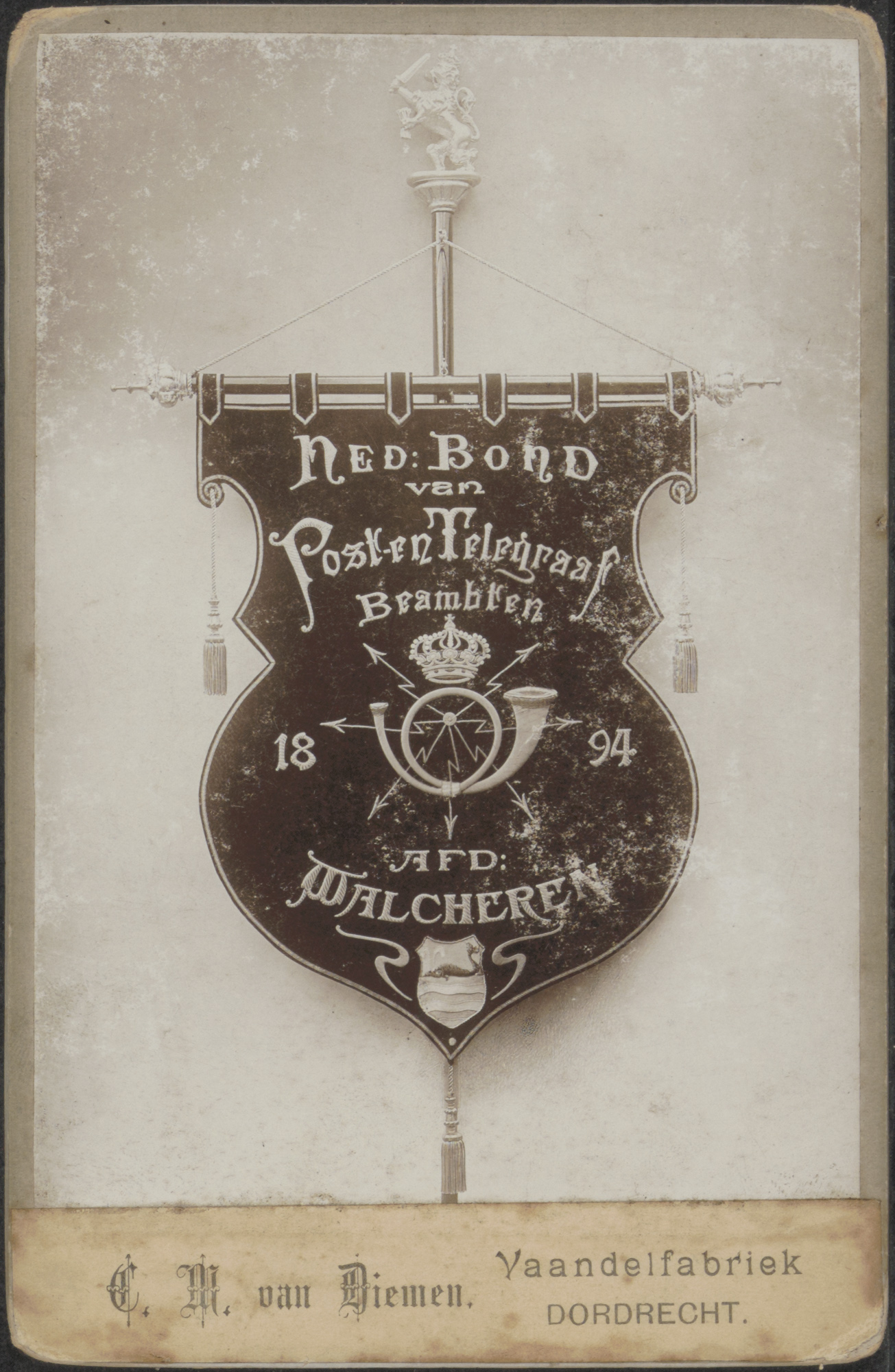 - Een vlag van de Post- en Telegraafbeambten, afd. Walcheren, 1894.