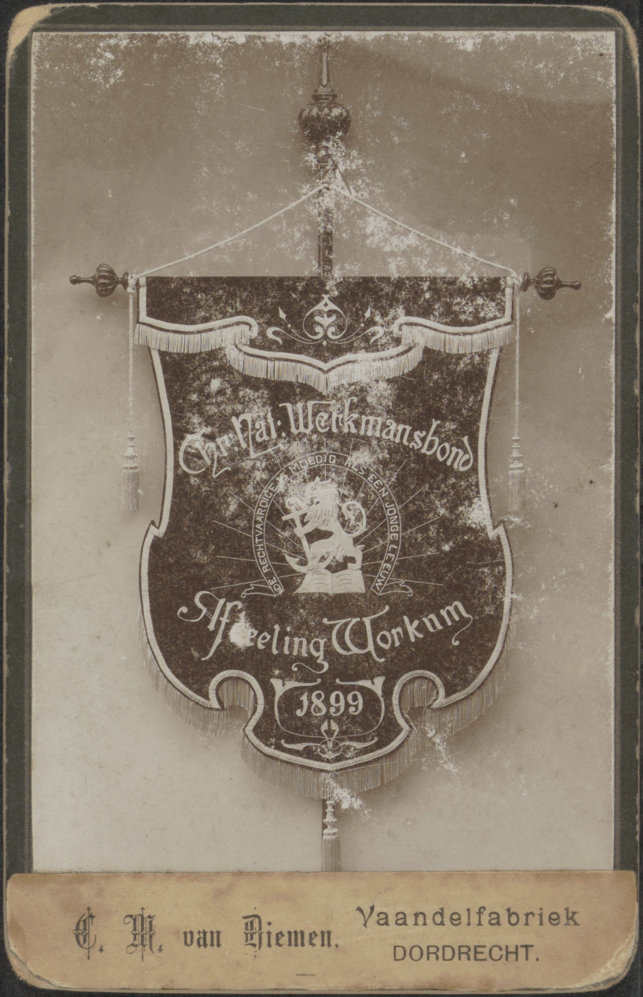 - Een vaandel van de Christelijke Nationale Werkmansbond, afd. Workum (De rechtvaardige is moedig als een jonge leeuw), 1899.