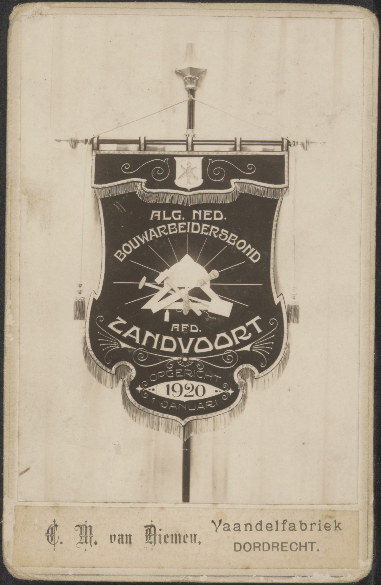 - Een vaandel van de Algemene Nederlandsche Bouwarbeidersbond, afd. Zandvoort; opgericht 1 januari 1920.