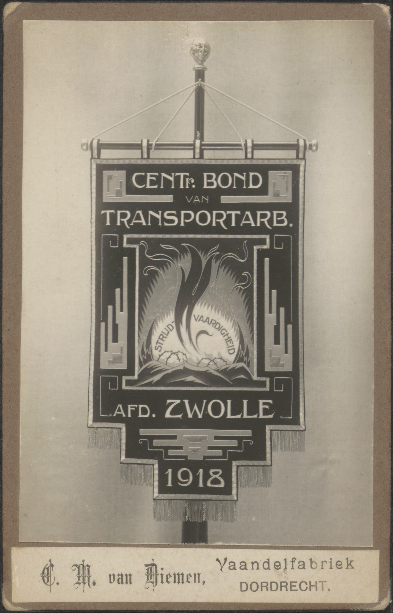 Een vaandel van de Centrale Bond van Transportarbeiders, afd. Zwolle.