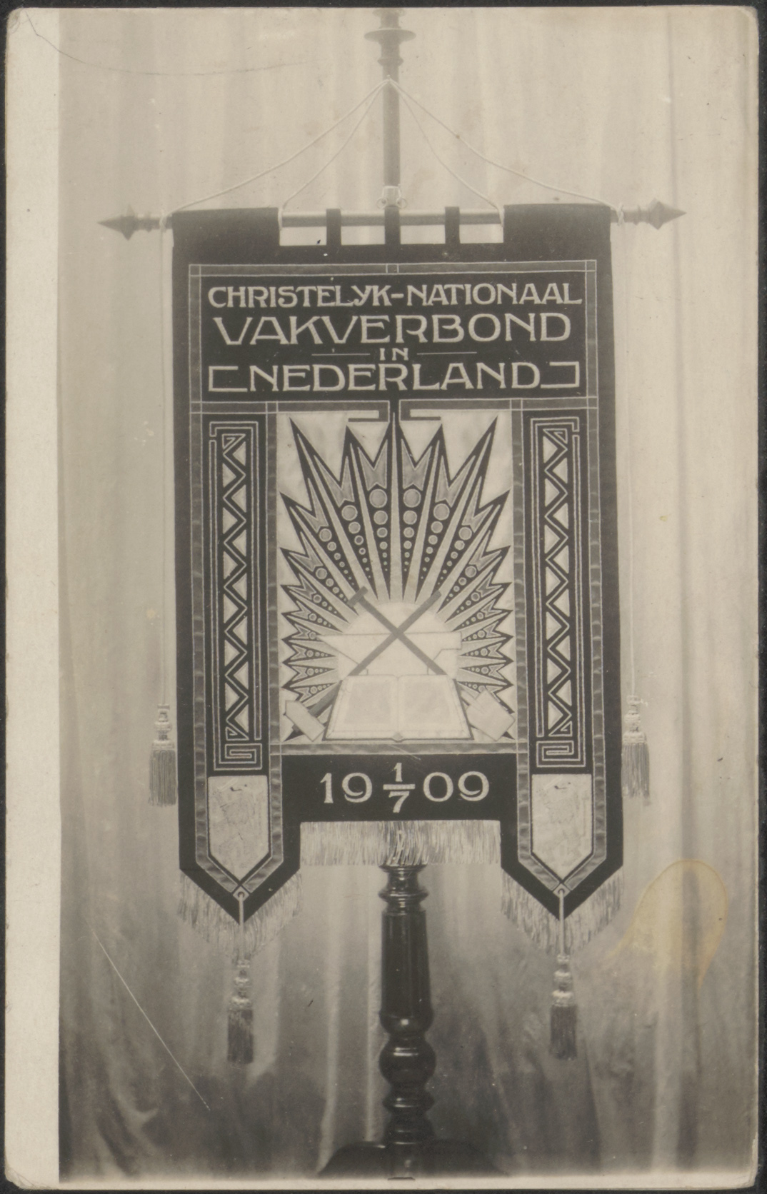 - Een vaandel van het Christelijk Nationaal Vakverbond in Nederland, opgericht 1 juli 1909.