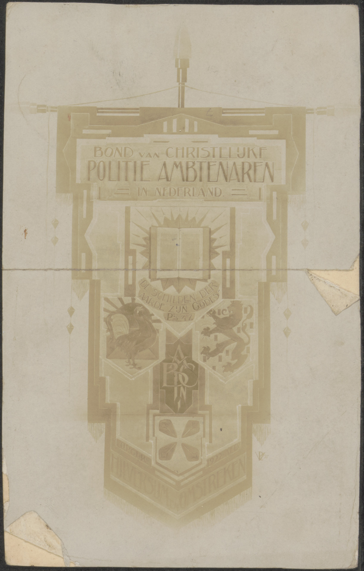 - Een vaandel van de Bond van Christelijke Politieambtenaren in Nederland (A.B.C.P.) (De schilden der aarde zijn Godes, psalm 47).
