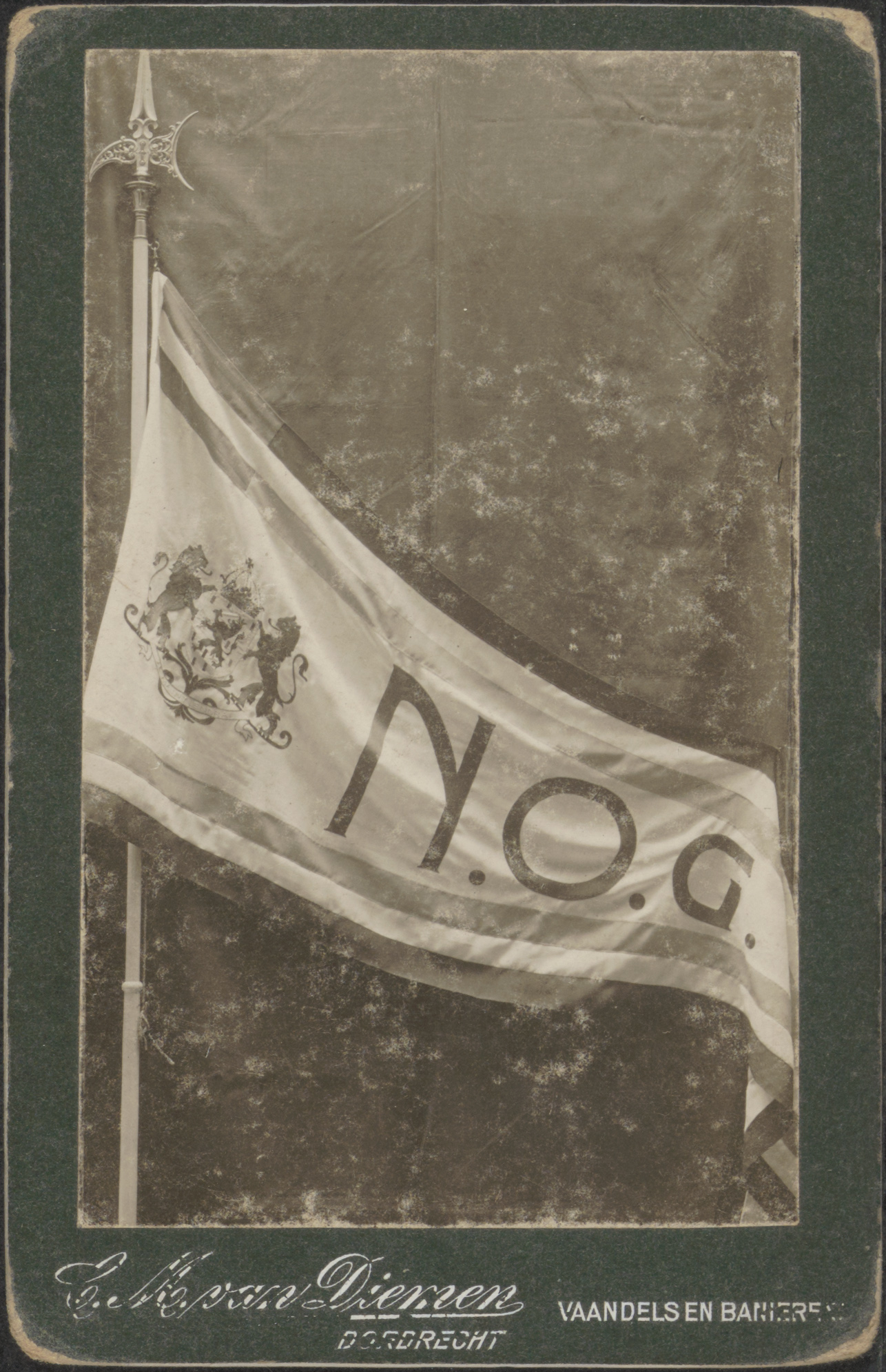 - Een vaandel van het N.O.G. met Nederlandsch wapen.
