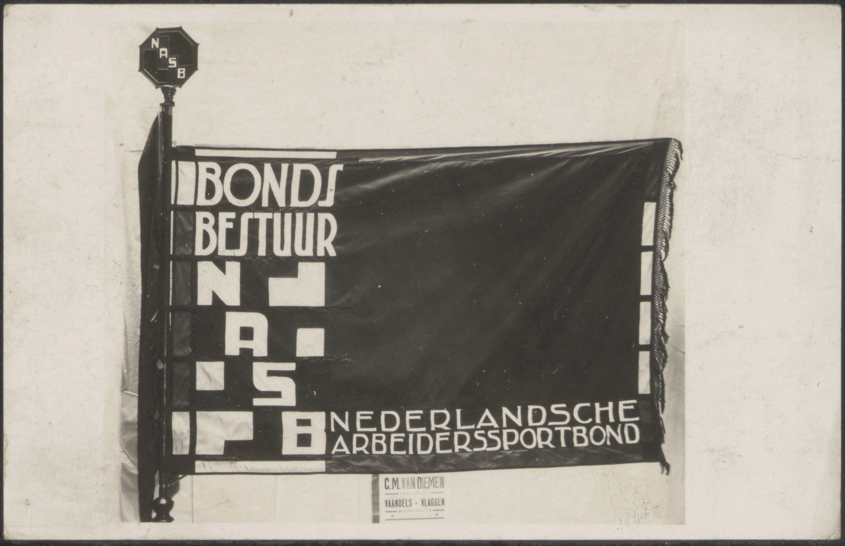- Een vlag van het bondsbestuur van de Nederlandsche Arbeiderssportbond (N.A.S.B.).
