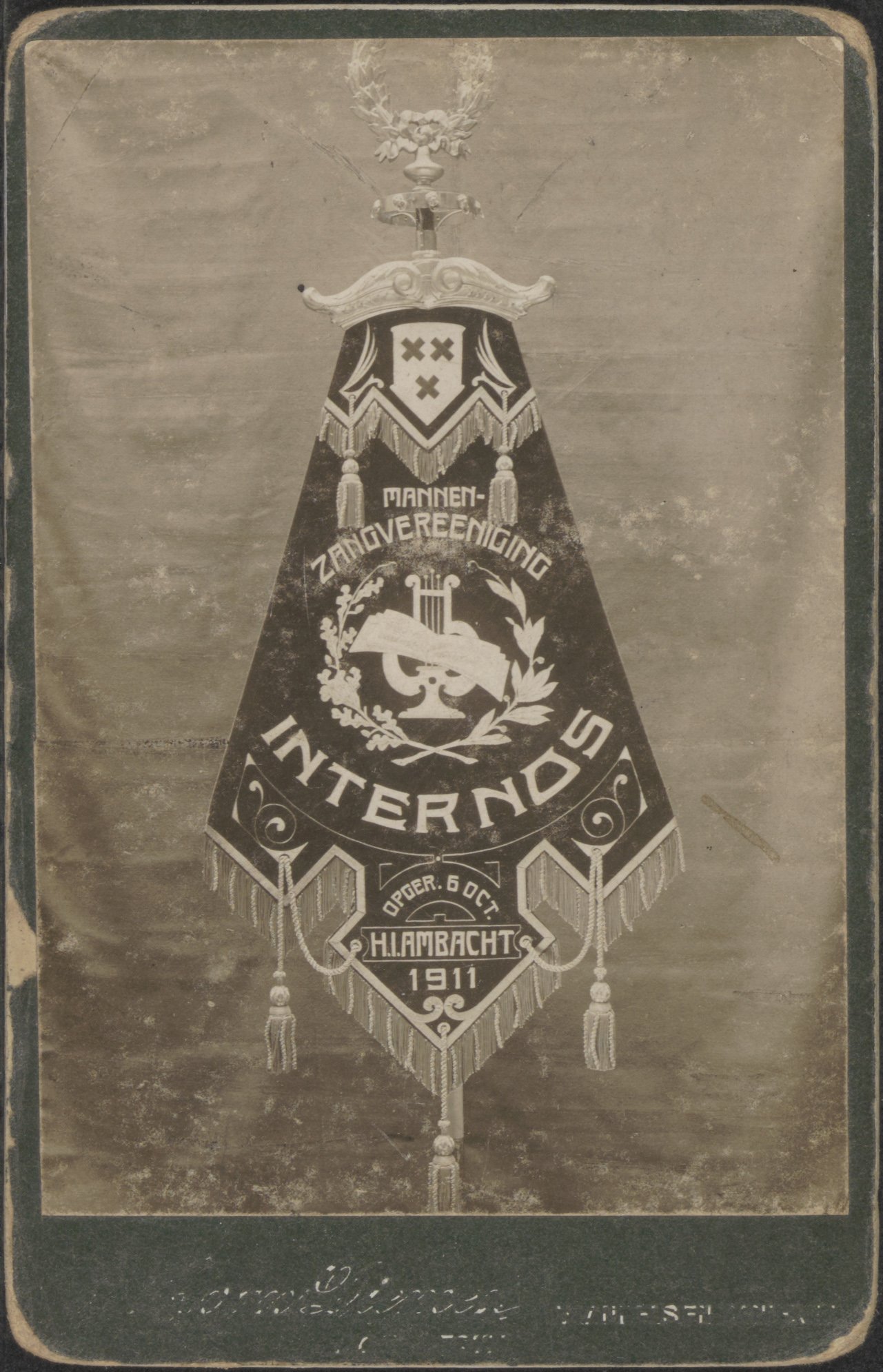 Een vaandel van de Mannen - Zangvereeniging "Internos" opgericht 5 oktober 1911.