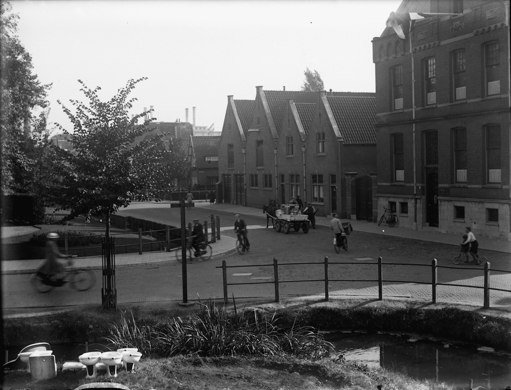 - De kruising Sint Jorisweg (links), Godfried Schalckensingel en Samuel van Hoogstratensingel (voorgrond rechts) gezien vanuit park Merwestein. Het pand rechts is het kantoor van gemeentewerken; voorheen heette het villa Soekasari en werd bewoond door mevrouw Staring, geb. Blussé. Door haar erven werd het voor 70.000 gulden aan de gemeente verkocht. Links een deel van de tuin van schouwburg Kunstmin.